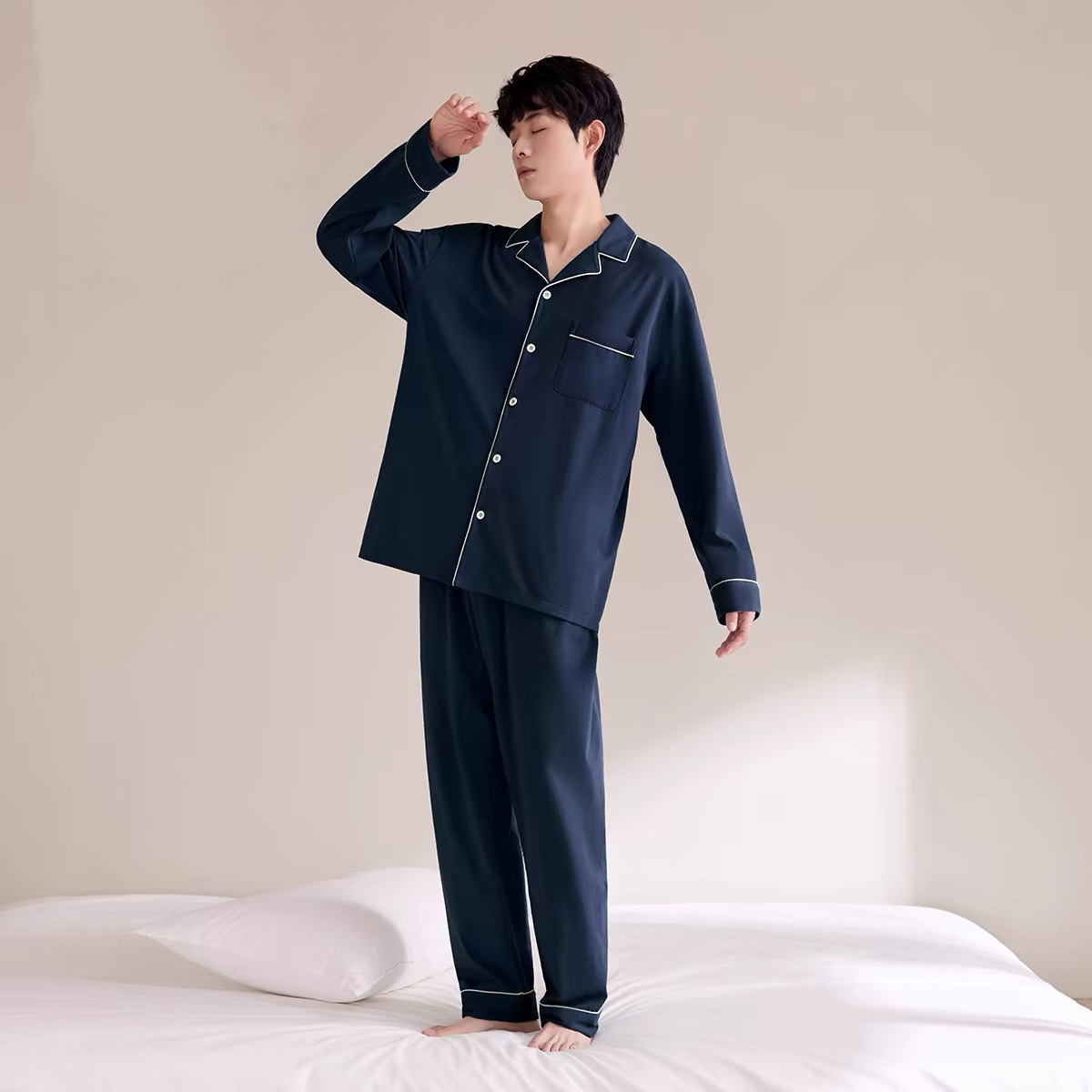 • 네이비 블루/남성용 순면 홈웨어 세트