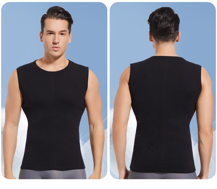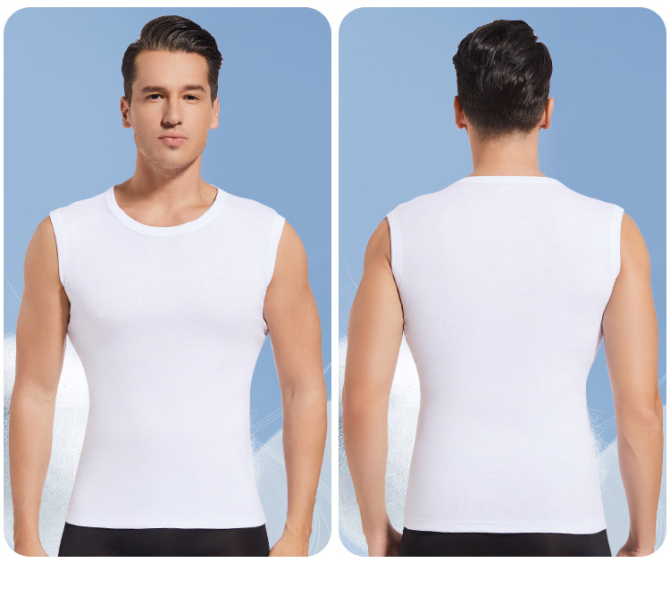 남자 조끼 100 면 허들 넓은 어깨 둥근 목 스포츠 민소매 면 봄과 가을베이스 언더 셔츠 여름