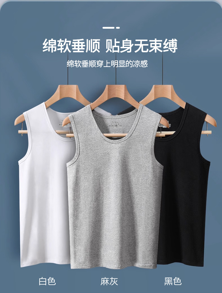 남자 조끼 100 면 허들 넓은 어깨 둥근 목 스포츠 민소매 면 봄과 가을베이스 언더 셔츠 여름스토어 가기