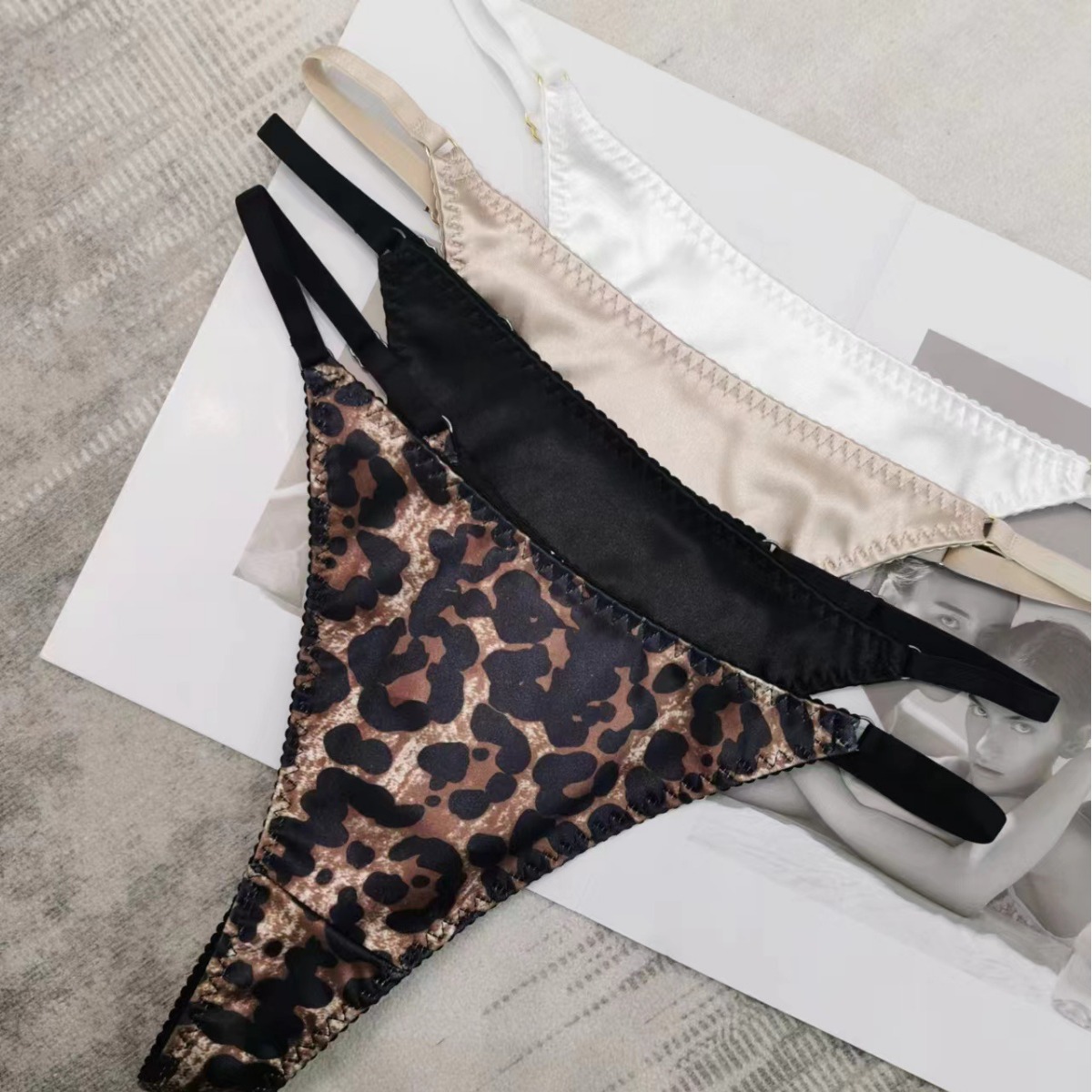 여성 끈 섹시한 레오파드 무늬 새틴 원활한 벨트 속옷 유럽과 미국의 섹시한 핫 로우 허리 반바지
