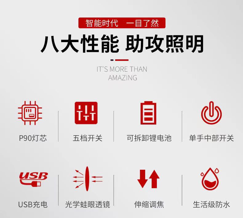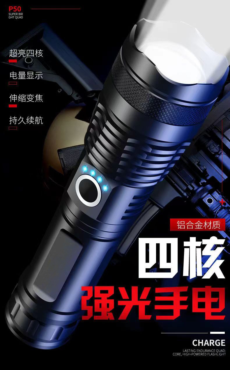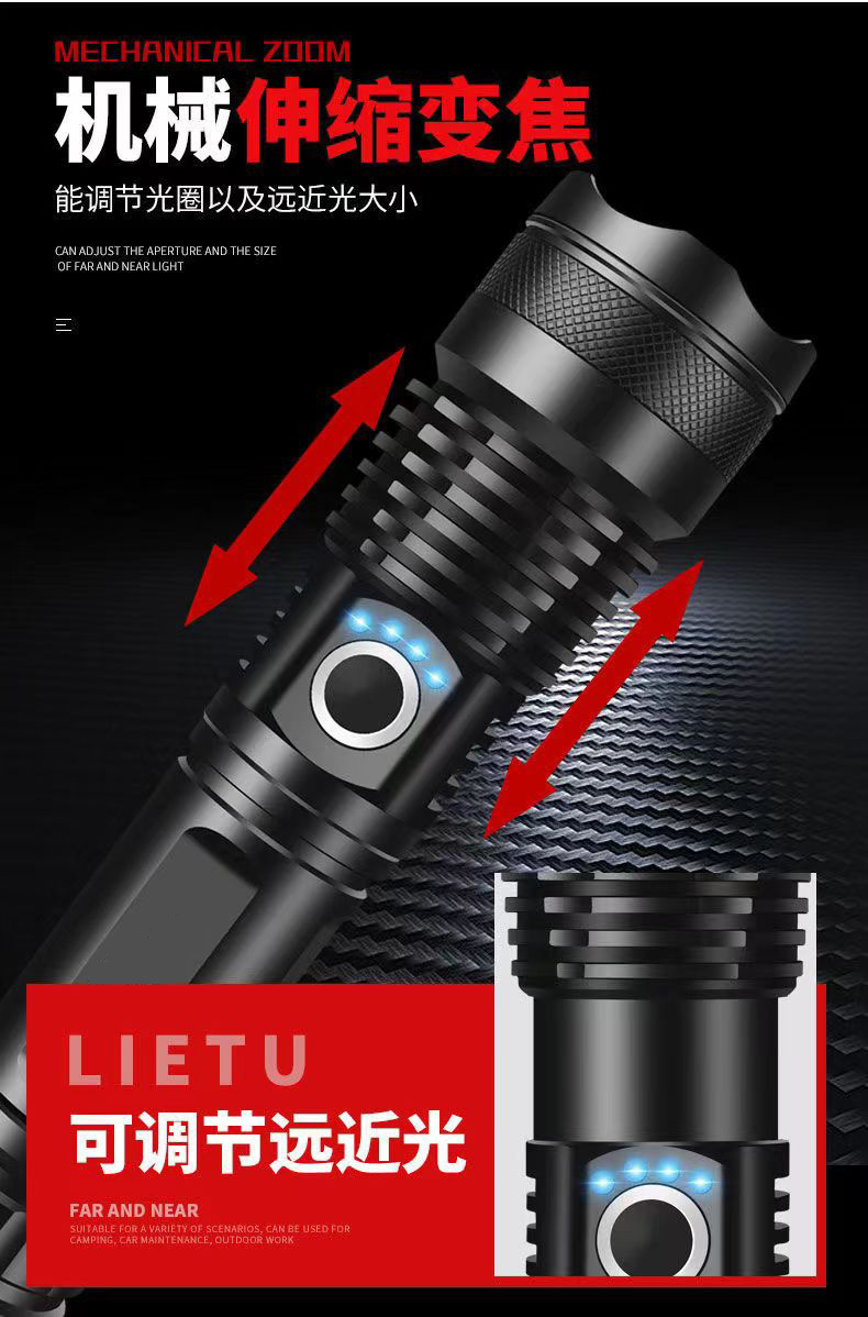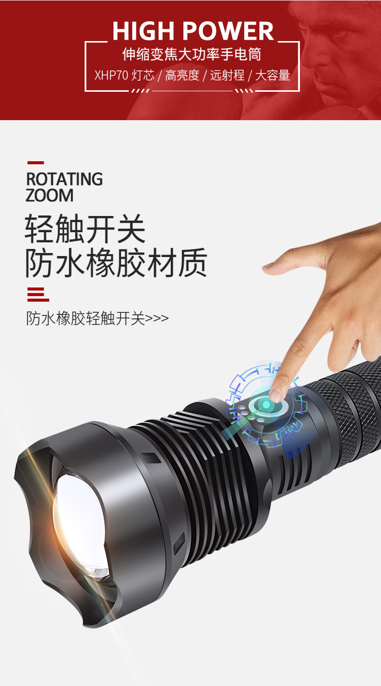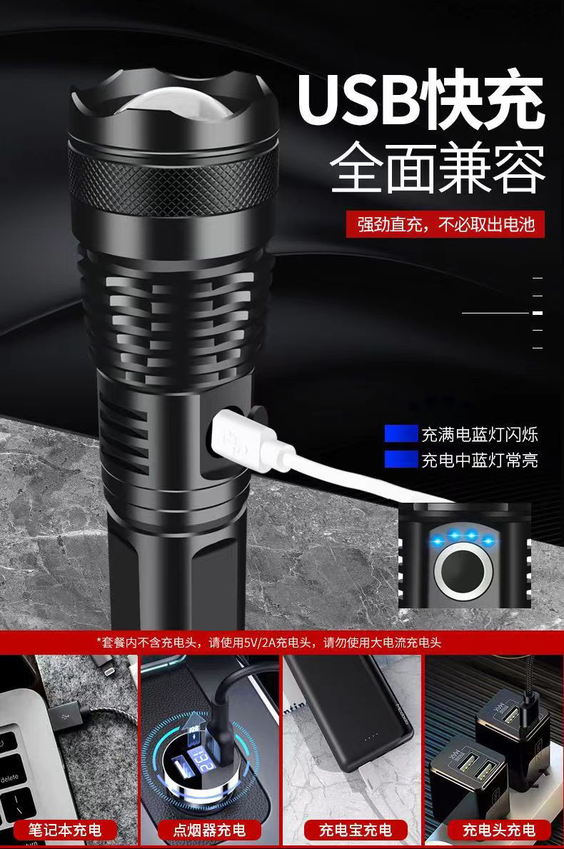 국경 간 야외 순찰 스포트라이트 장거리 강력한 손전등 고출력 수명이 매우 밝은 줌 충전식 손전등