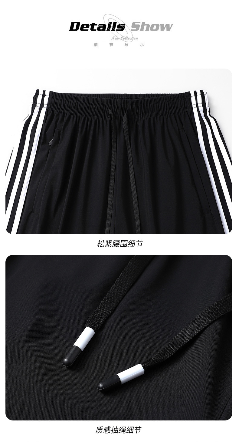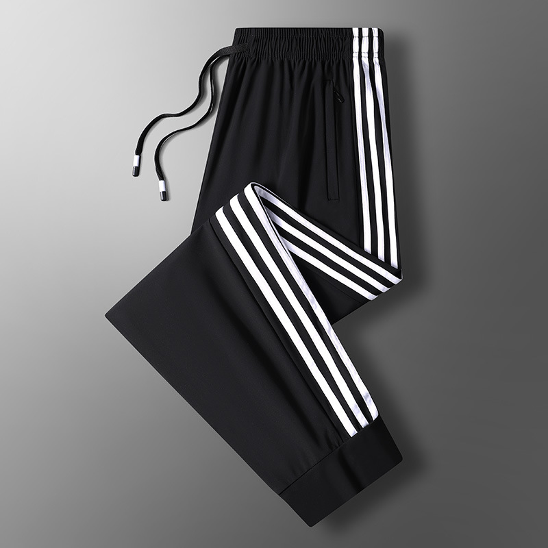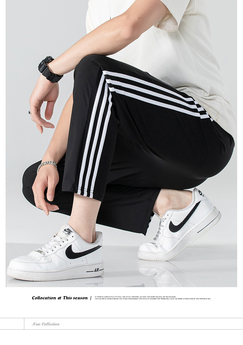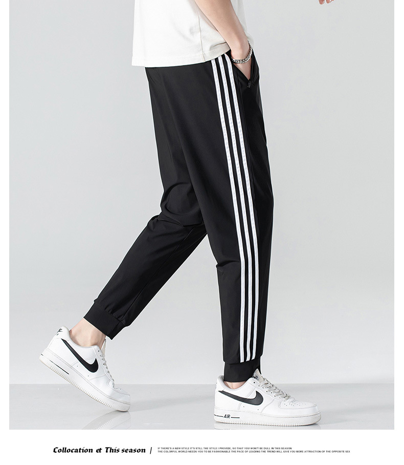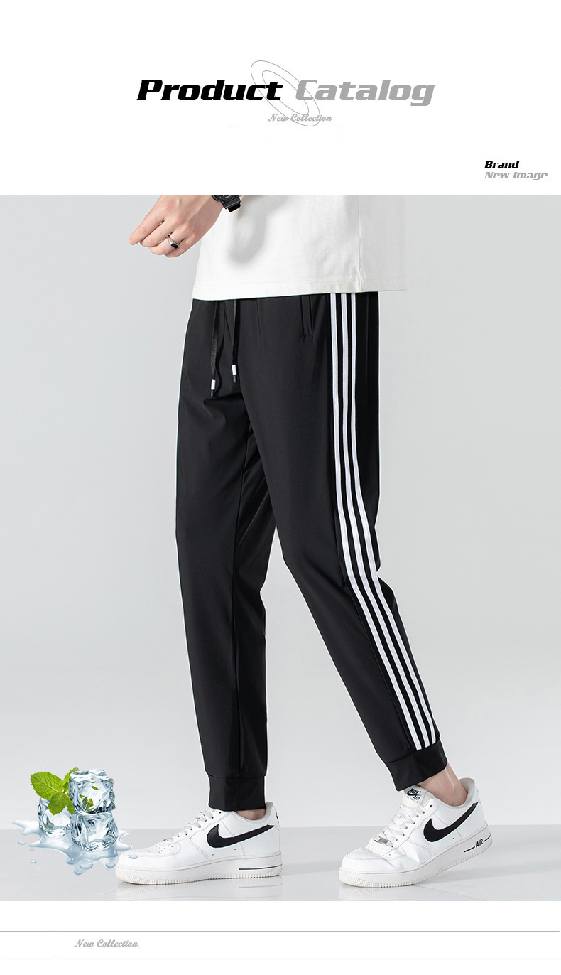 패션 트렌드 아이스 실크 캐주얼 바지 남자 2024 여름 새로운 3 바 스포츠 빠른 건조 바지 남자 긴 바지스토어 가기