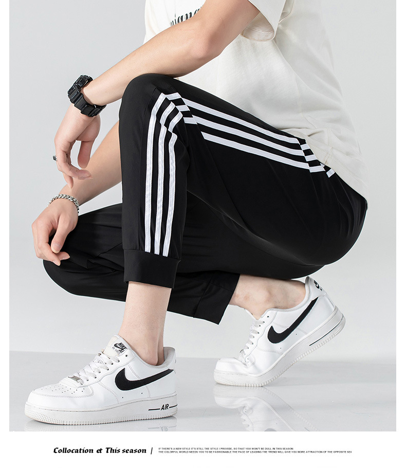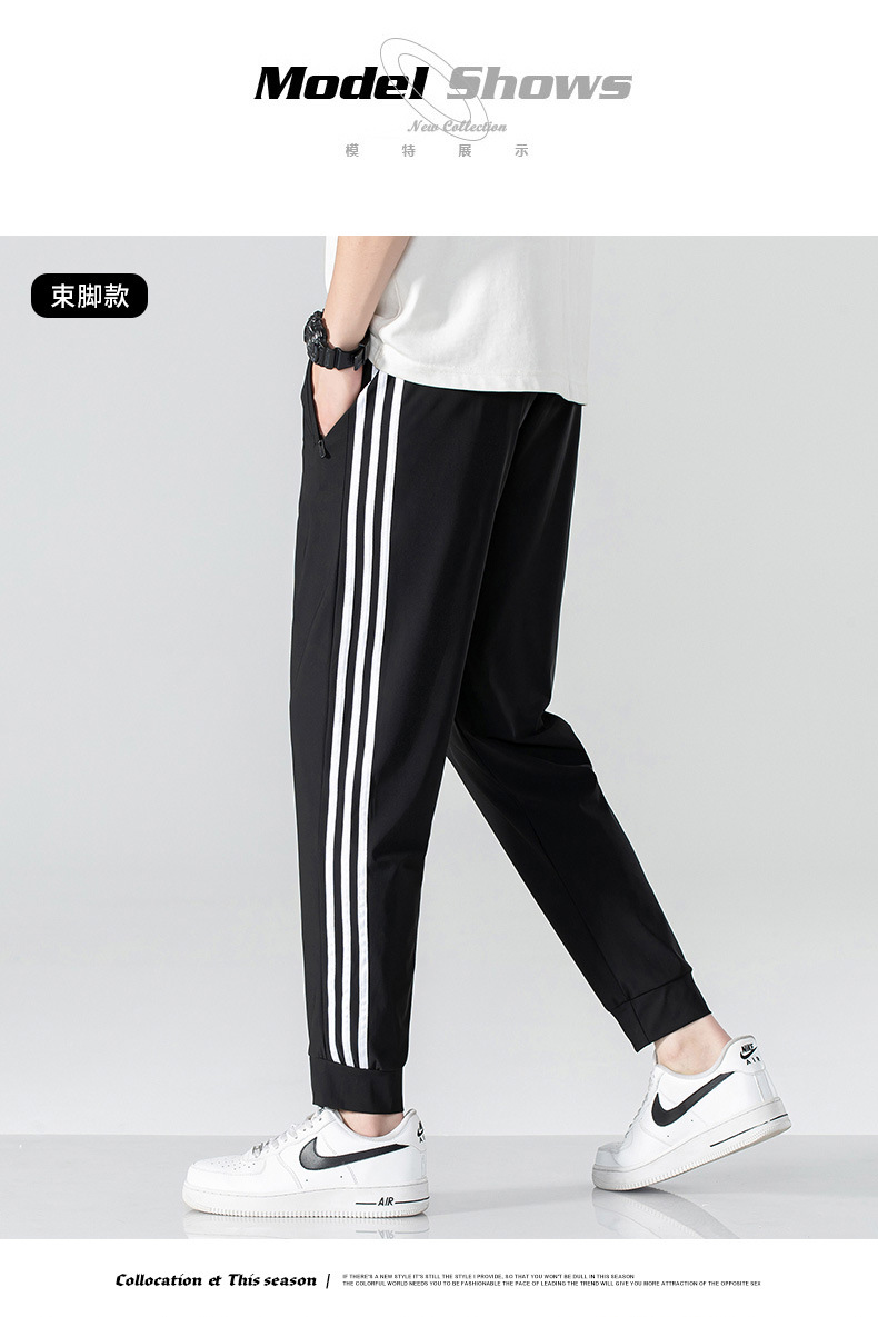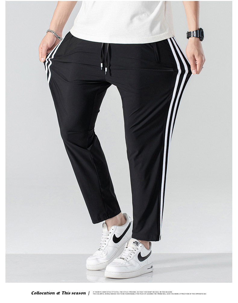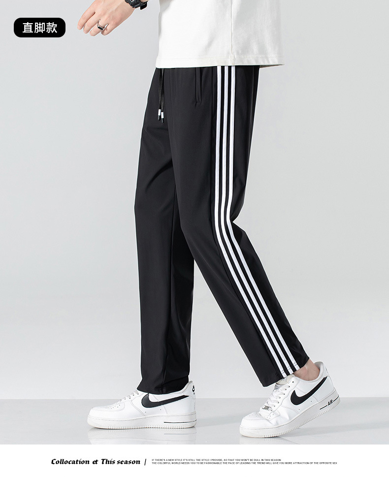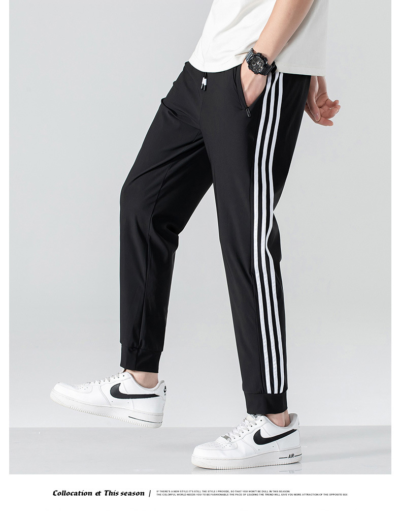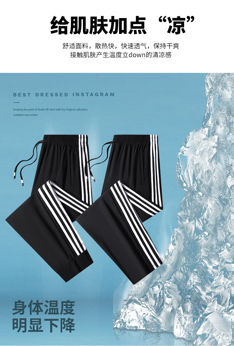 패션 트렌드 아이스 실크 캐주얼 바지 남자 2024 여름 새로운 3 바 스포츠 빠른 건조 바지 남자 긴 바지