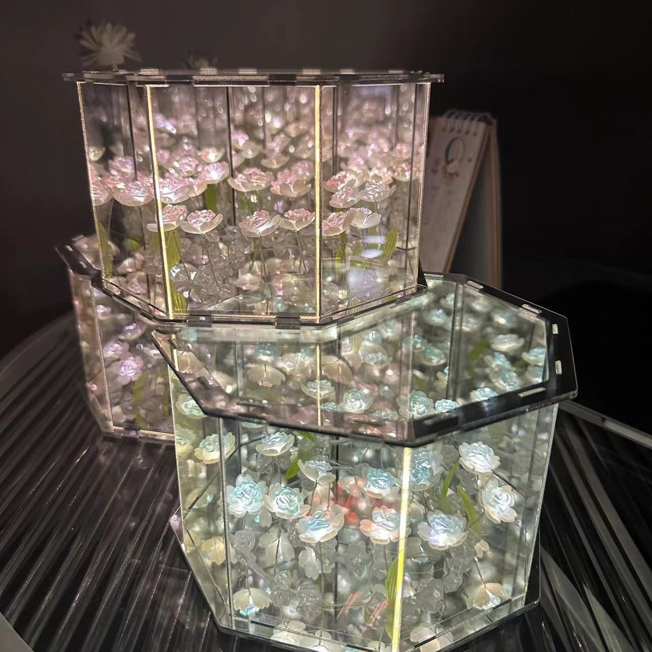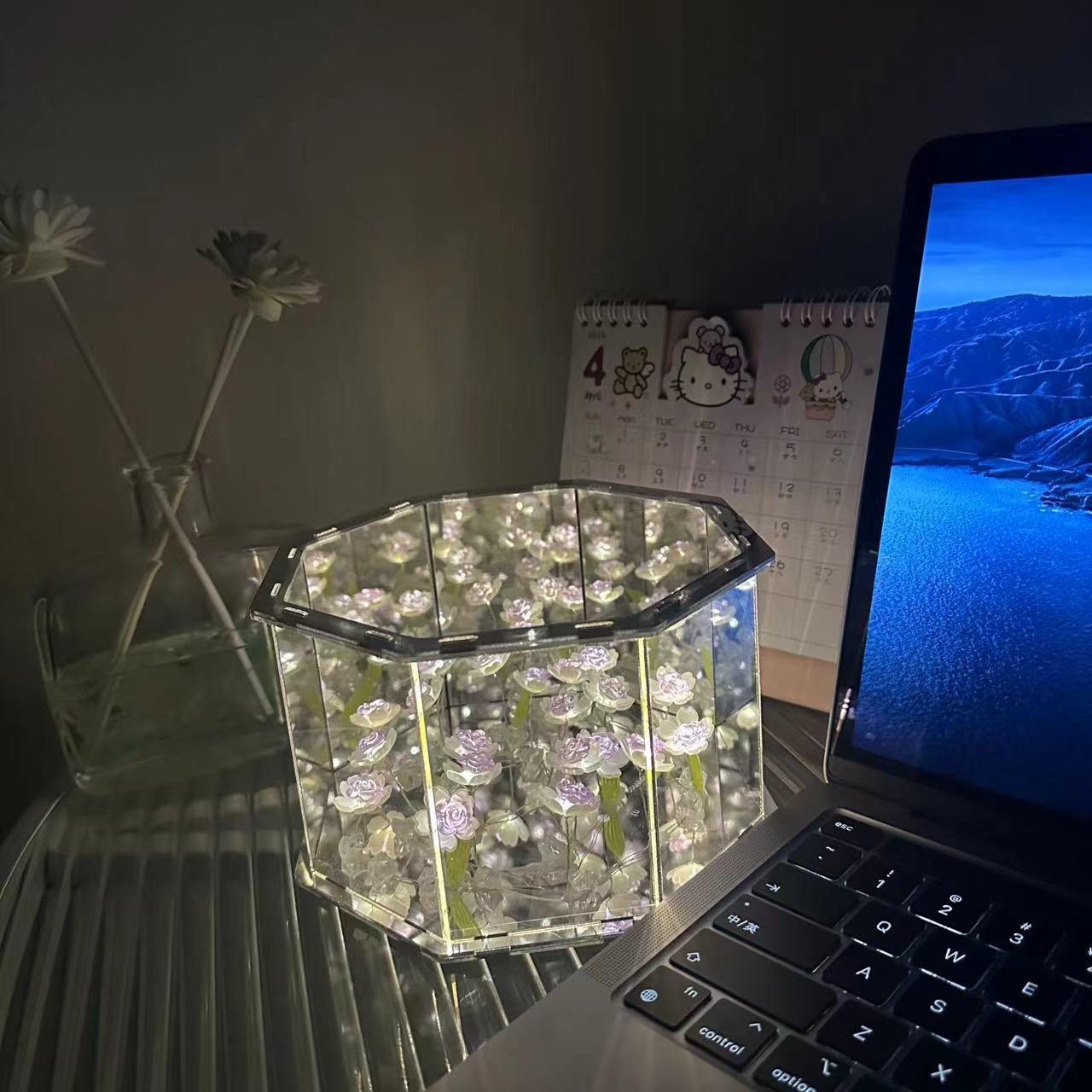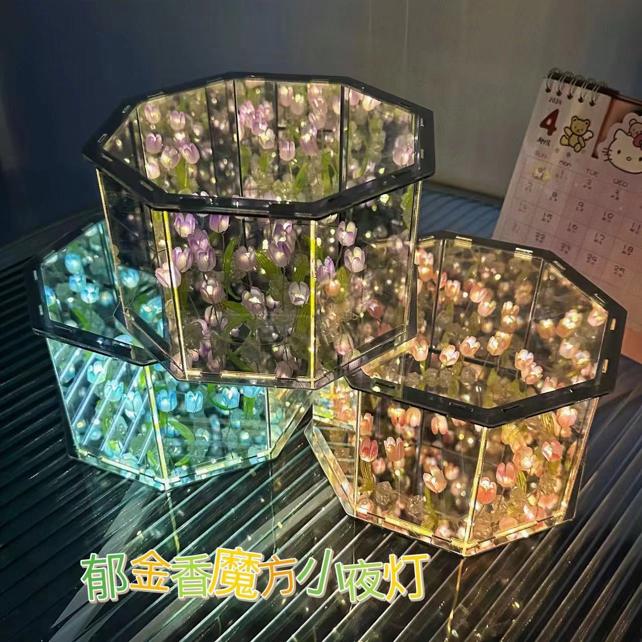 수제 DIY 팔각형 장미 튤립 꽃 바다 밤 빛 창조적 인 여자 친구를 보내 520 생일 선물