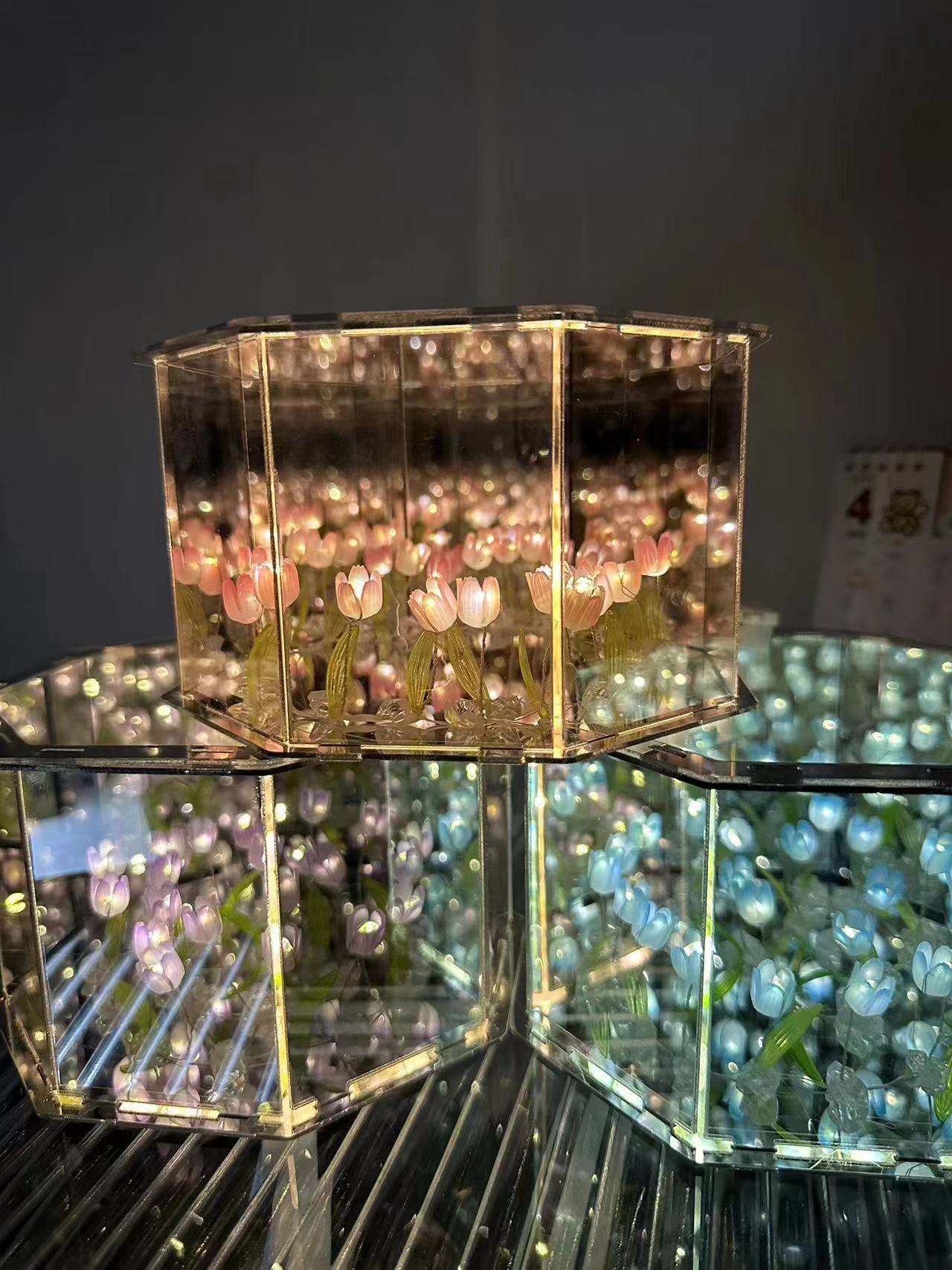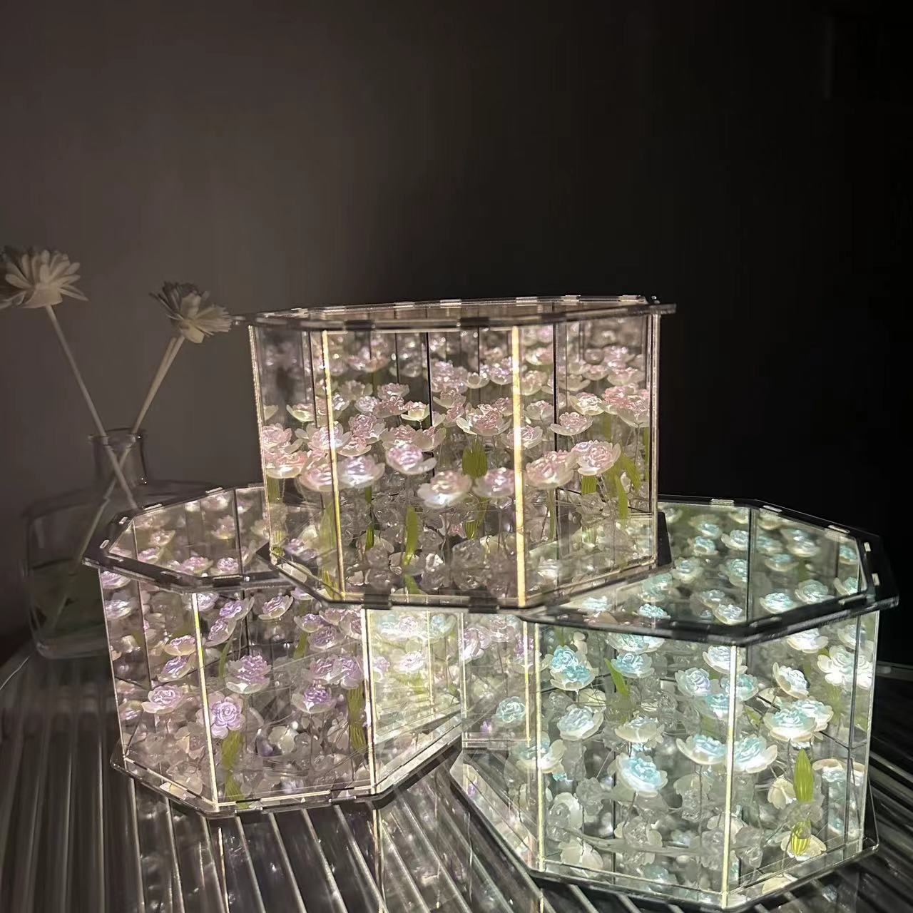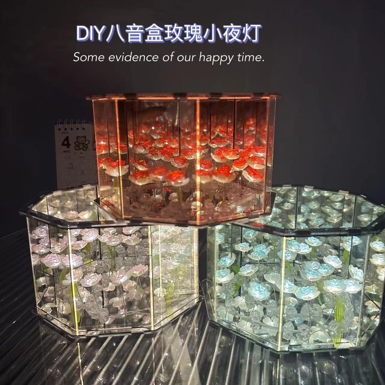 수제 DIY 팔각형 장미 튤립 꽃 바다 밤 빛 창조적 인 여자 친구를 보내 520 생일 선물