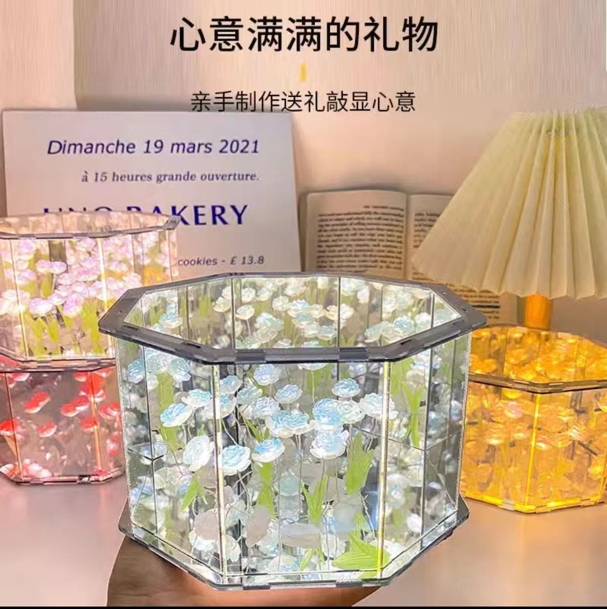 수제 DIY 팔각형 장미 튤립 꽃 바다 밤 빛 창조적 인 여자 친구를 보내 520 생일 선물스토어 가기