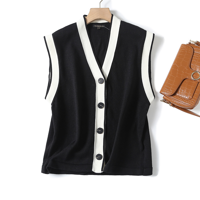 9571-봄 새로운 여성복 유럽과 미국 스타일 V-Neck 민소매 버클 니트 조끼스토어 가기