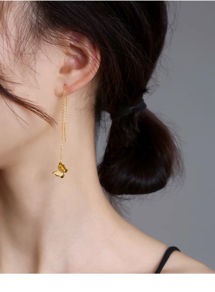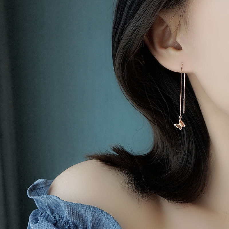 티타늄 스틸 새로운 나비 틈새 하이 엔드 이어 라인 트렌디 한 우아한 긴 술 얼굴 슬림 패션 올 매치 여성 귀걸이스토어 가기
