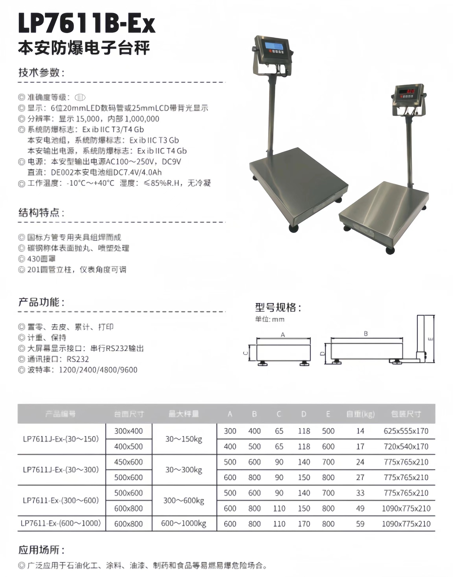 닝보 롱케 본질적으로 안전한 폭발 방지 전자 스케일 스테인레스 스틸 벤치 스케일 고정밀 정확한 응답 빠른 화학 제약 워크샵