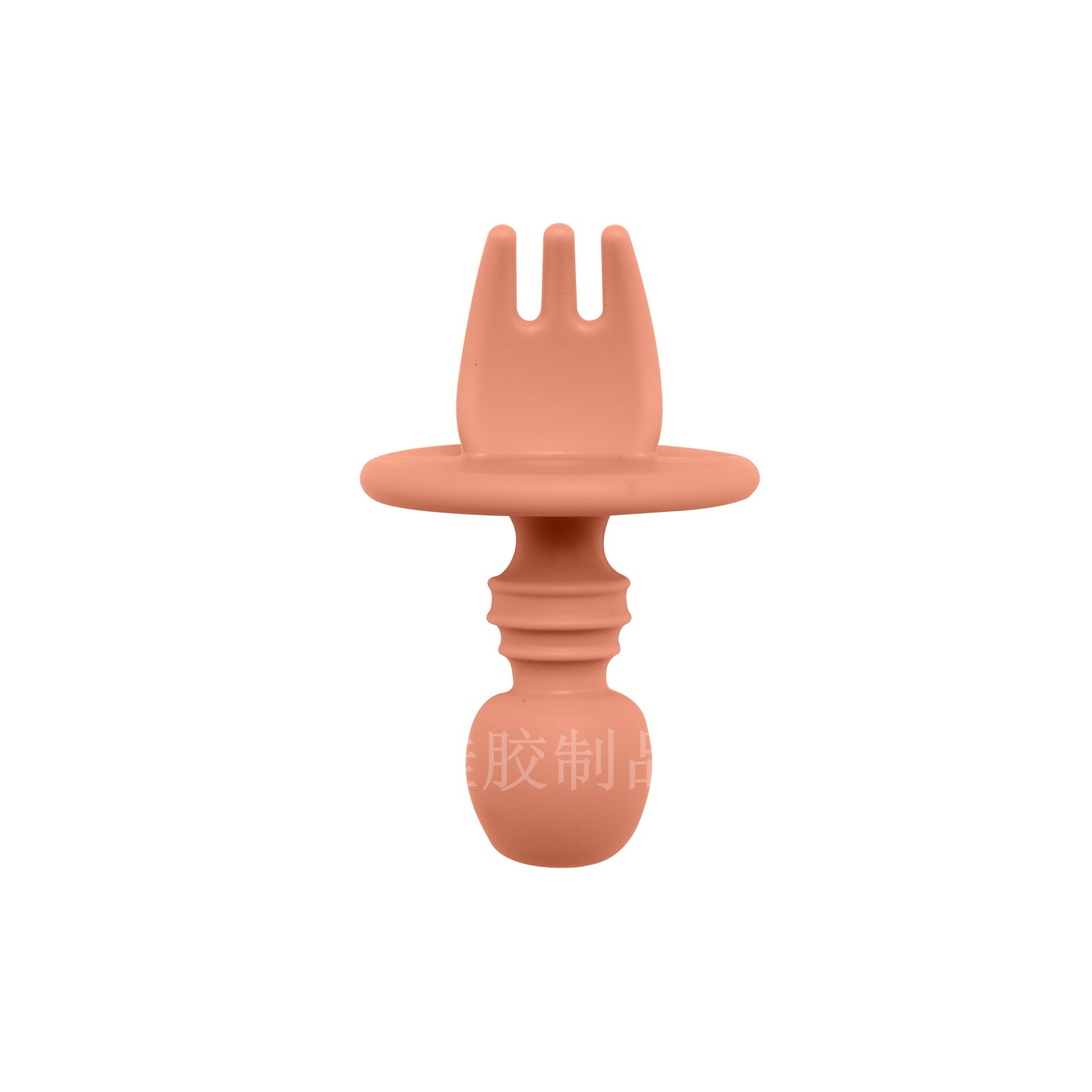 국경 간 뜨거운 어린이 실리콘 포크 스푼 아기 먹이 독립적 인 식사 문화 식기 짧은 핸들 핥기 학습 포크 스푼