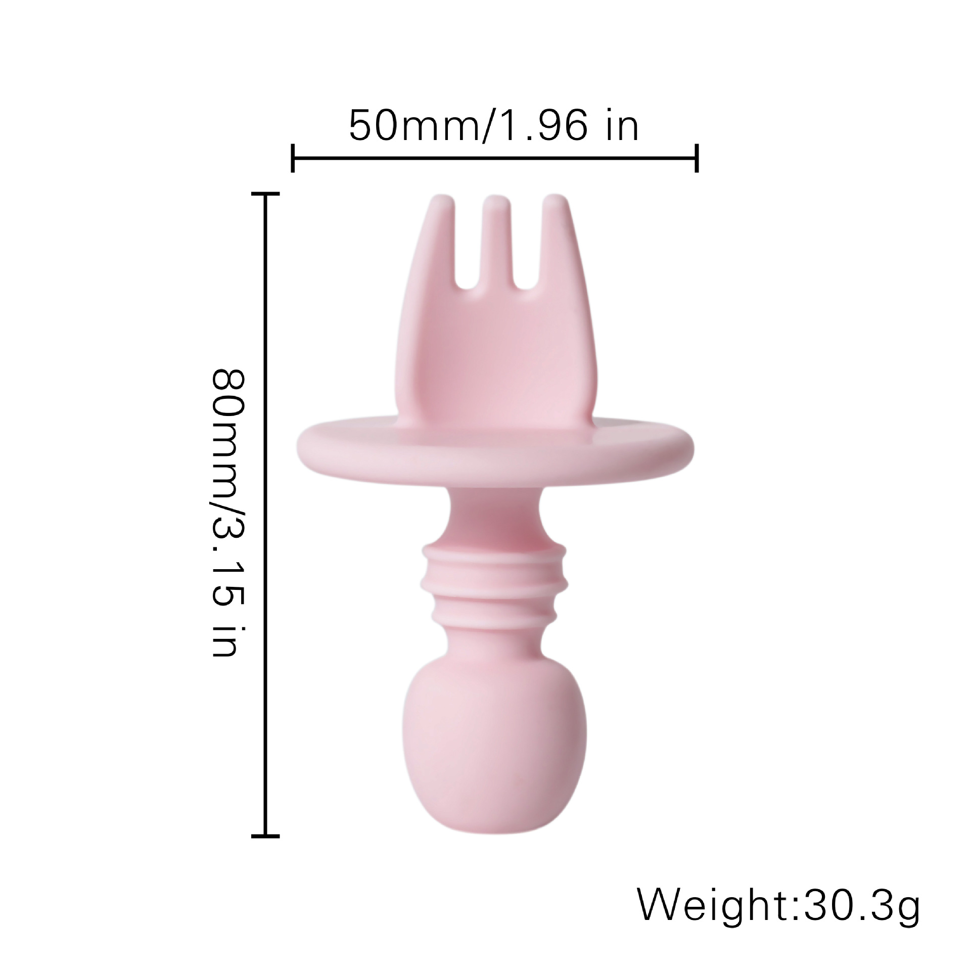 국경 간 뜨거운 어린이 실리콘 포크 스푼 아기 먹이 독립적 인 식사 문화 식기 짧은 핸들 핥기 학습 포크 스푼스토어 가기