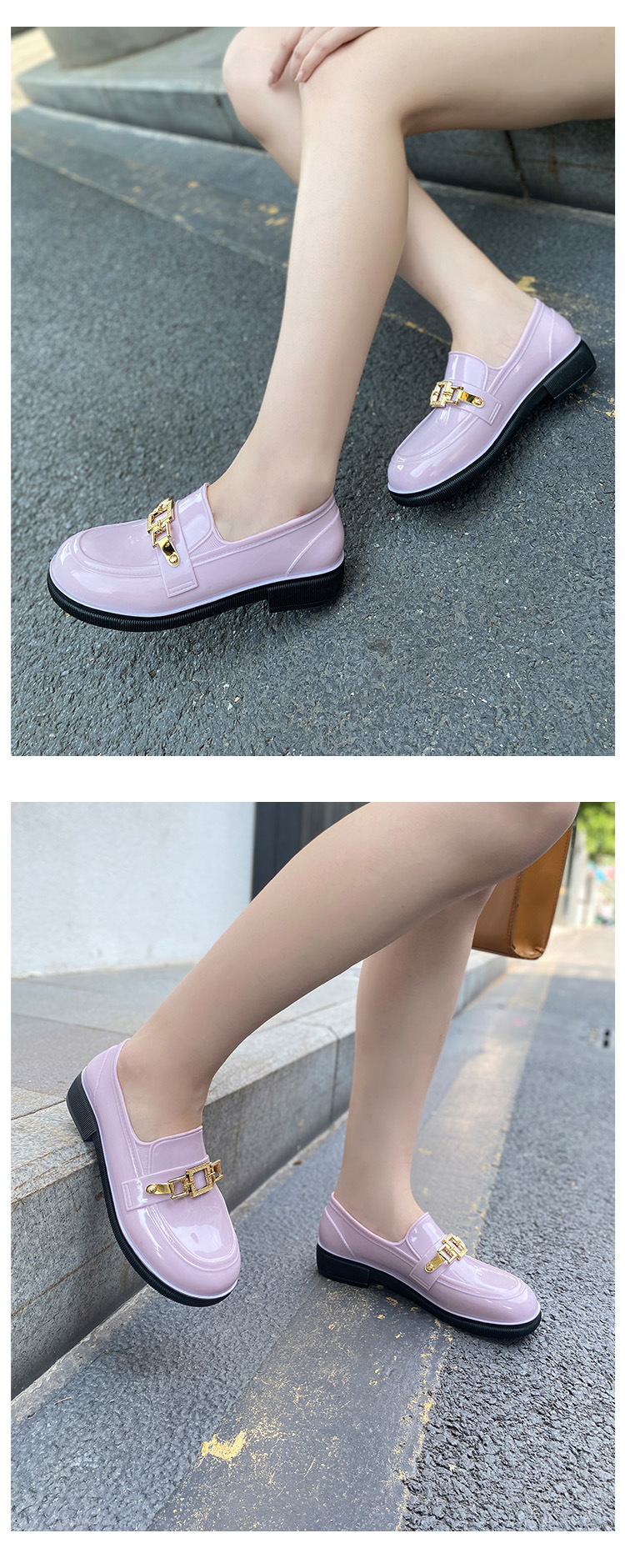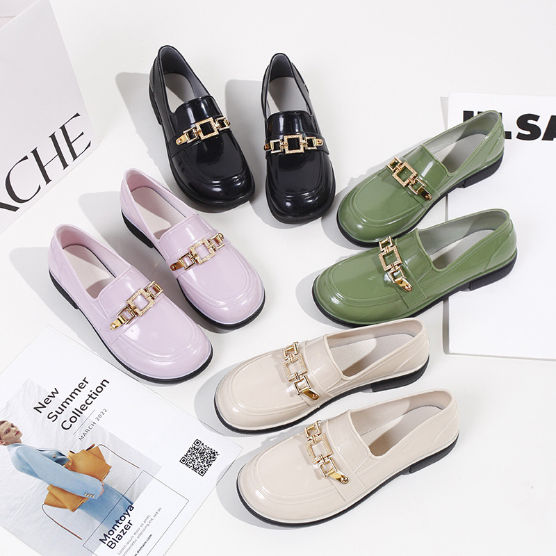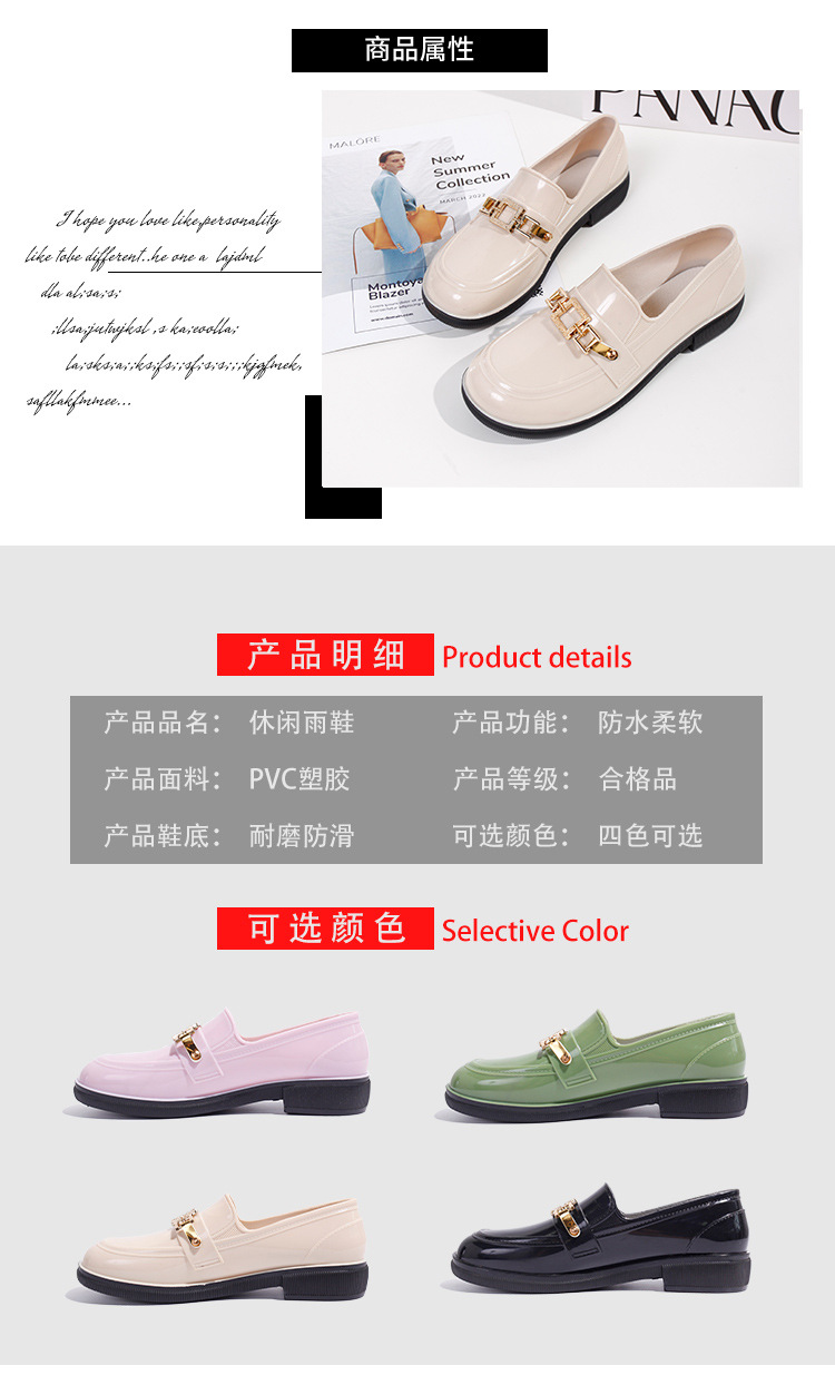 캐주얼 레인 부츠 여성용 로우 탑 미끄럼 방지 워터 슈즈 여름 패션 청소년 작업 신발 내마모성 방수 아우터웨어 얕은 입 고무 신발