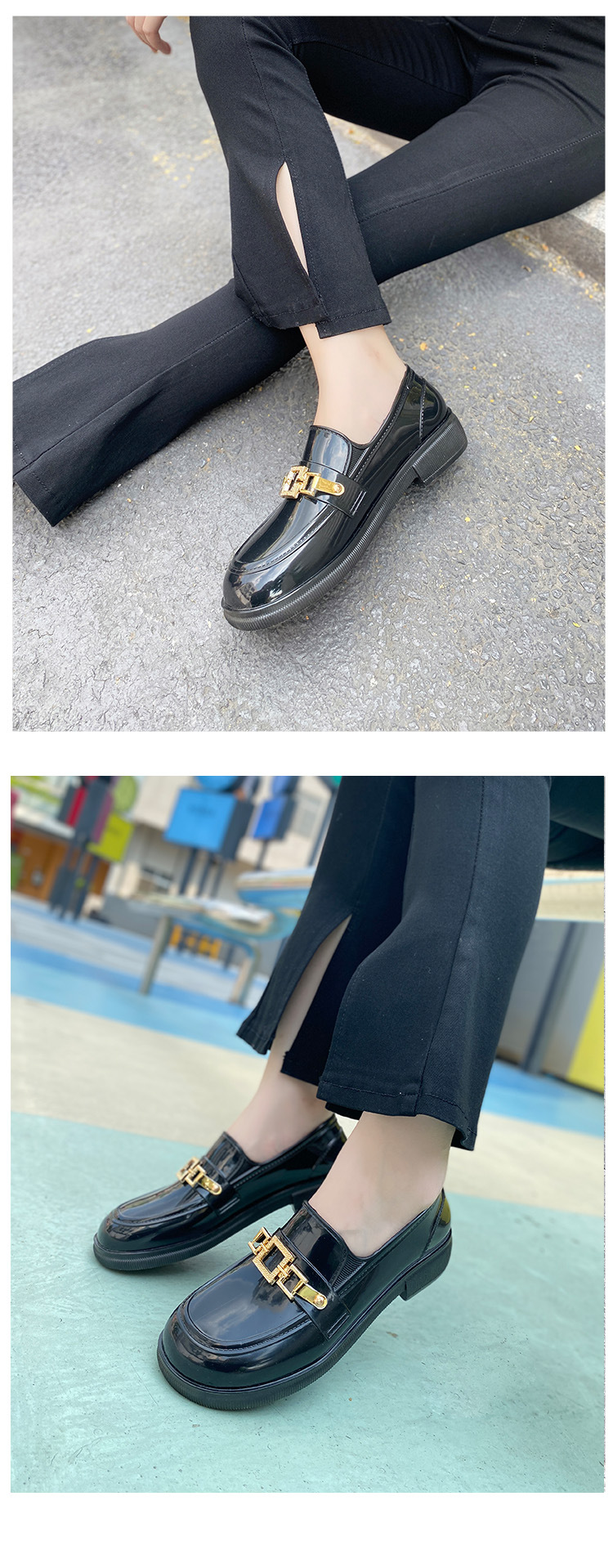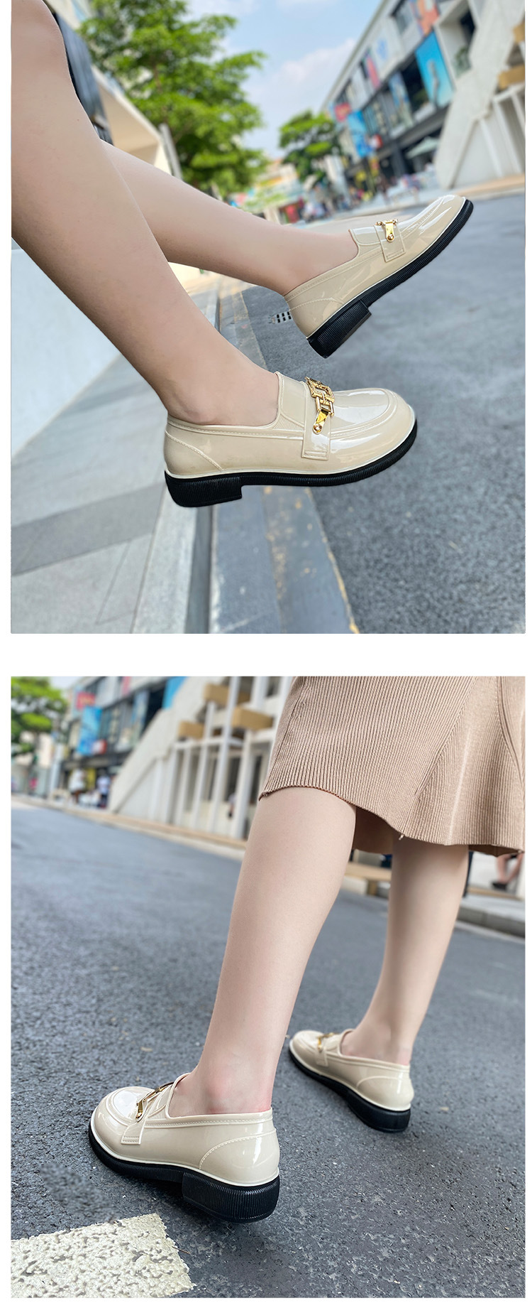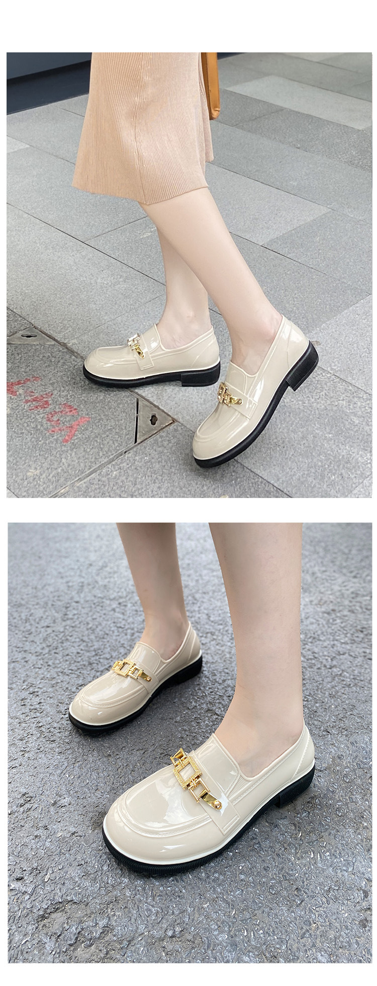 캐주얼 레인 부츠 여성용 로우 탑 미끄럼 방지 워터 슈즈 여름 패션 청소년 작업 신발 내마모성 방수 아우터웨어 얕은 입 고무 신발