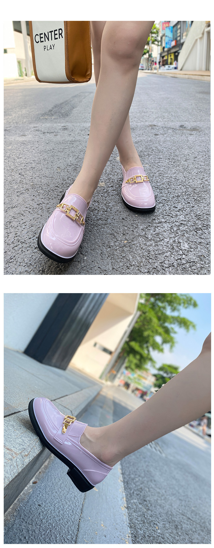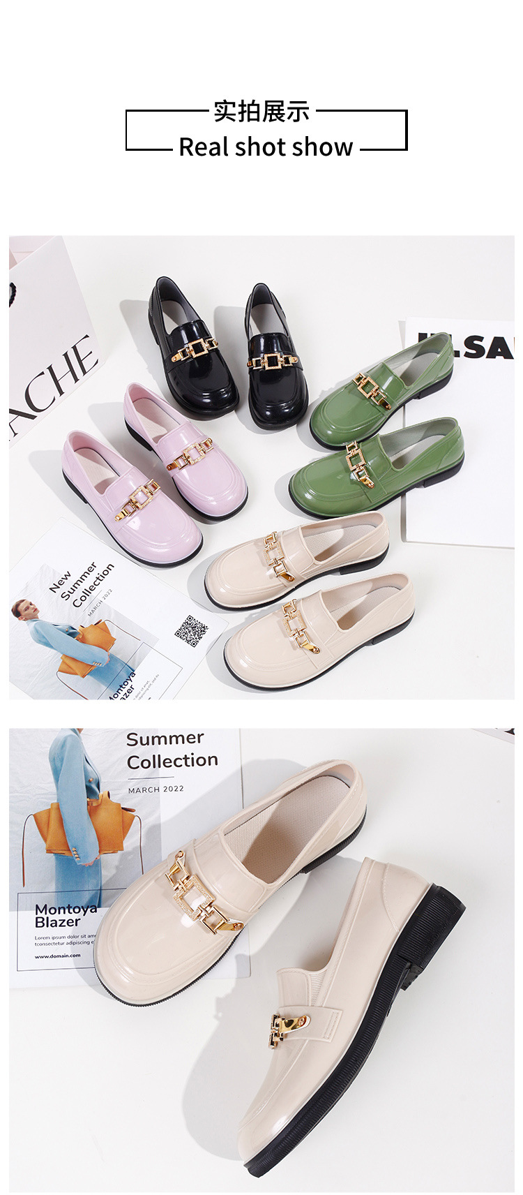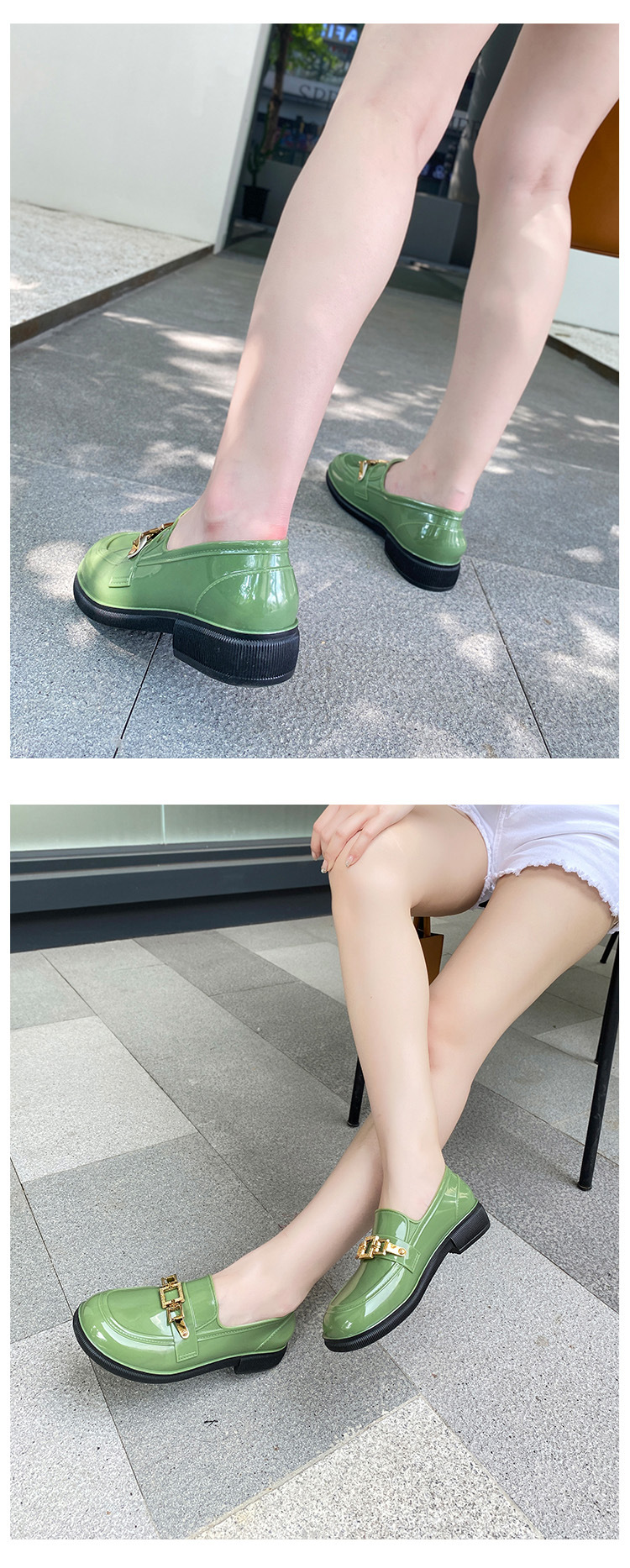 캐주얼 레인 부츠 여성용 로우 탑 미끄럼 방지 워터 슈즈 여름 패션 청소년 작업 신발 내마모성 방수 아우터웨어 얕은 입 고무 신발스토어 가기