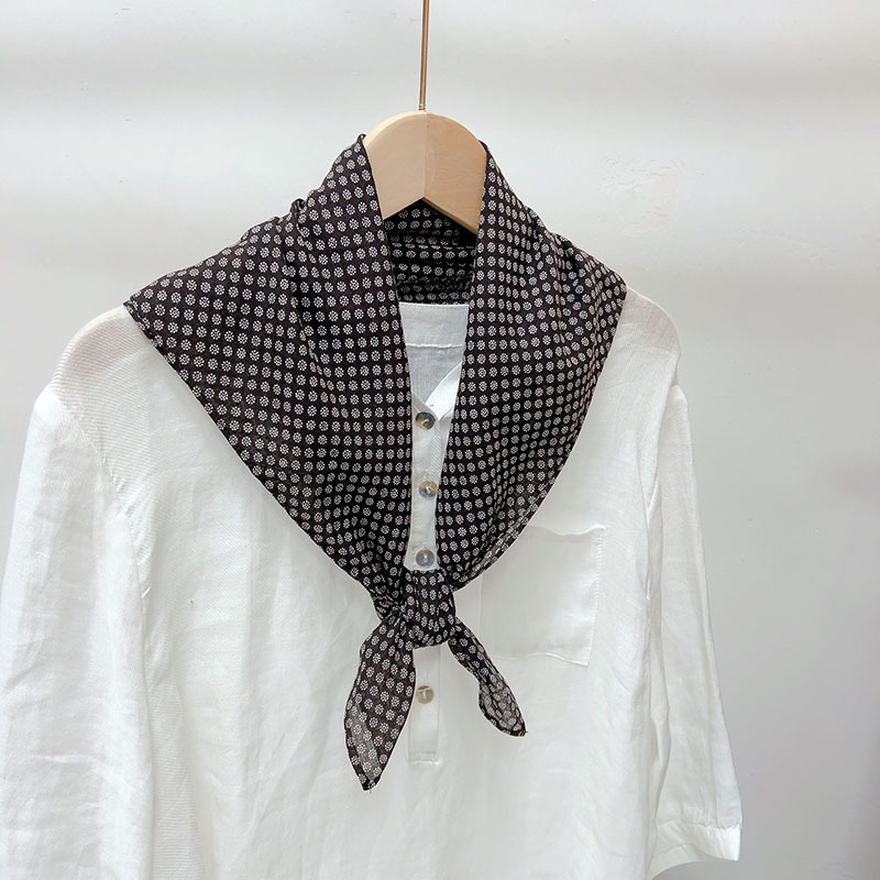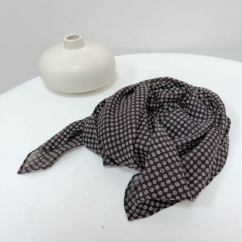 봄과 여름 얇은 면 인쇄 작은 사각형 한국 스타일의 다재다능한 선 스크린 작은 목도리 일본식 및 한국식 빈티지 스카프 여성