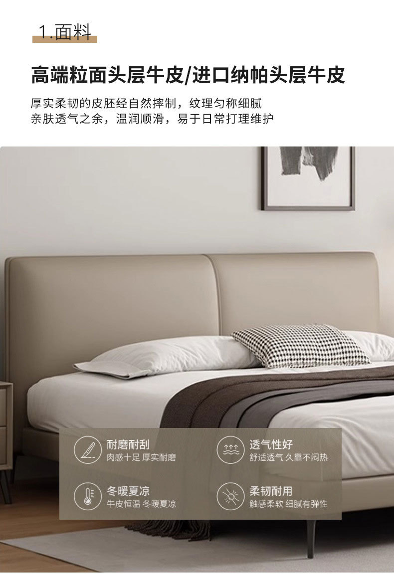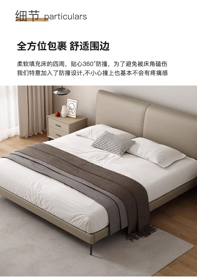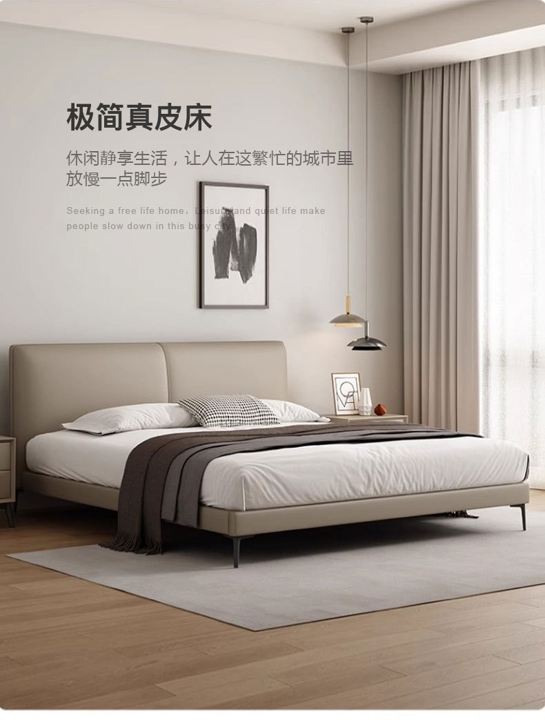 이탈리아 미니멀리스트 가죽 침대 인터넷 유명 인사 마스터 침실 1.8 m 더블 침대 빛 럭셔리 소프트 가죽 아트 침대 현대 간단한 웨딩 침대스토어 가기