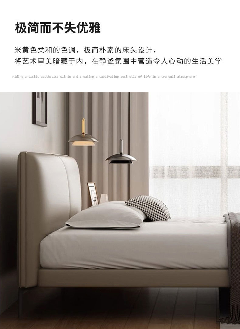 이탈리아 미니멀리스트 가죽 침대 인터넷 유명 인사 마스터 침실 1.8 m 더블 침대 빛 럭셔리 소프트 가죽 아트 침대 현대 간단한 웨딩 침대