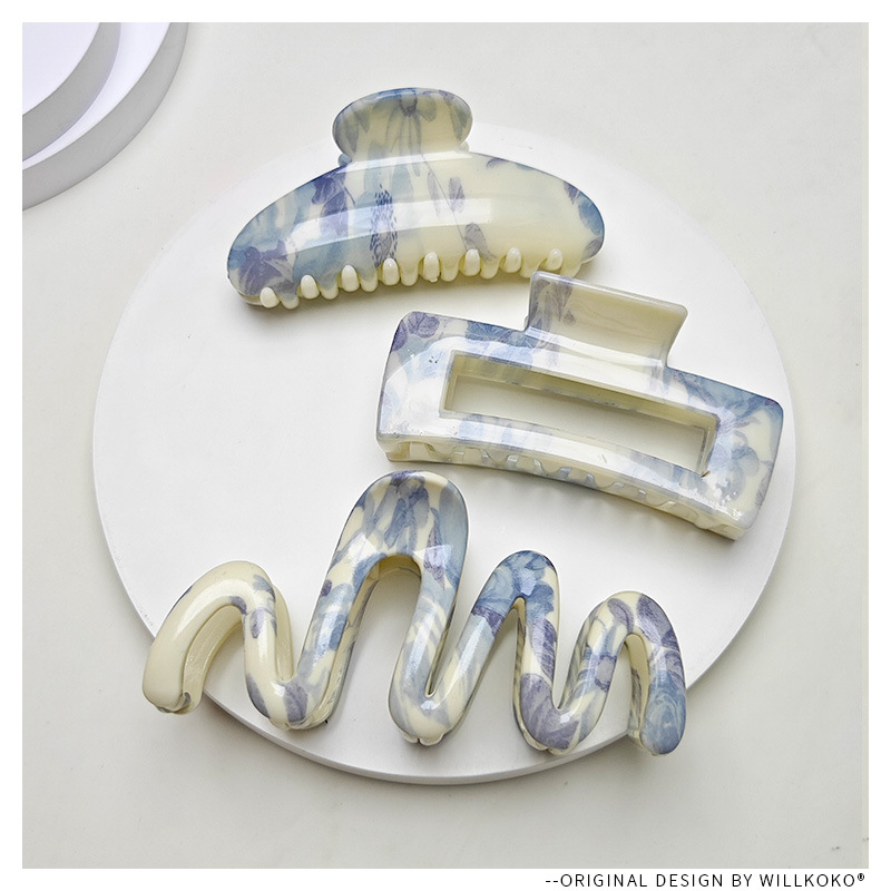 물 전송 인쇄 클립 머리핀 여성 높은 감각 기질 헤어 클립 상어 클립 머리핀 헤어 액세서리 도매