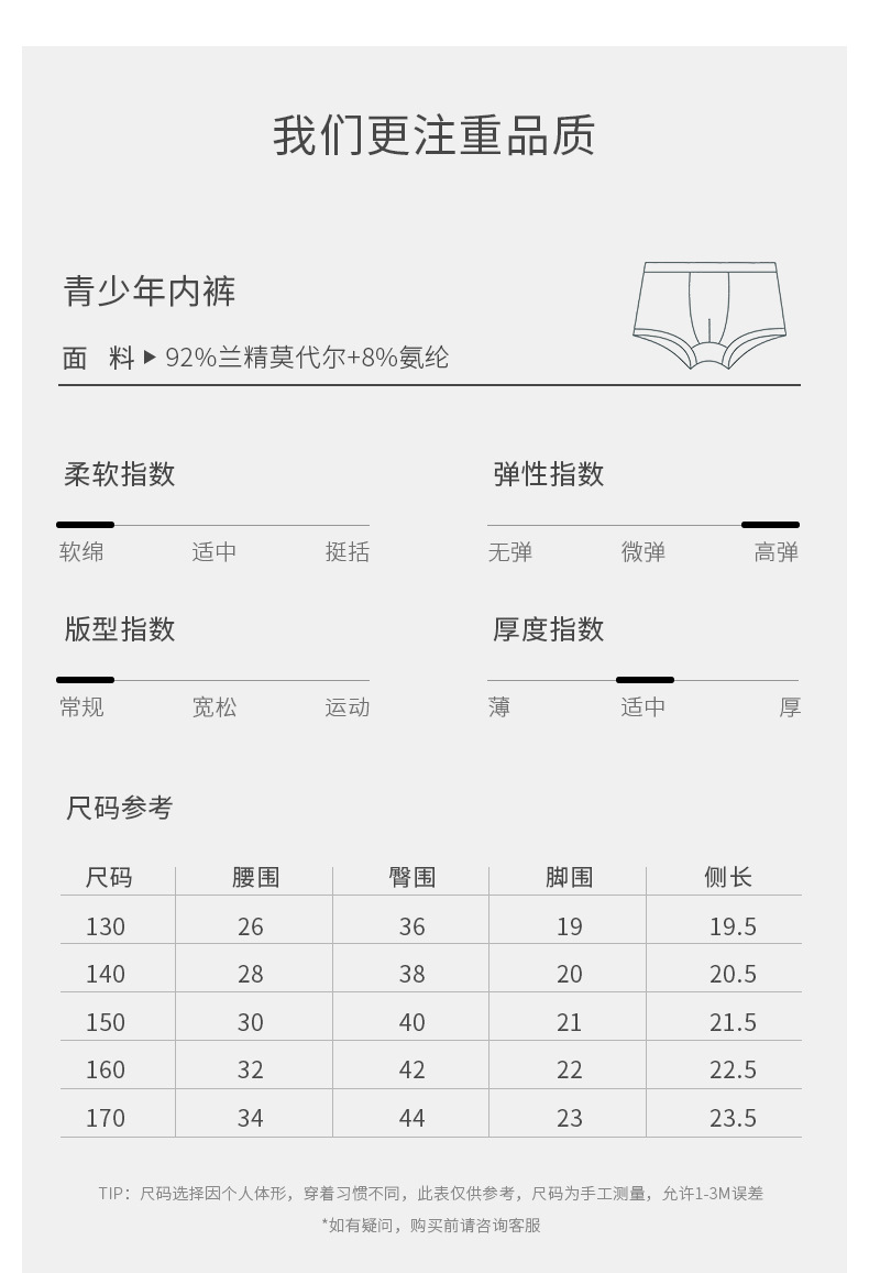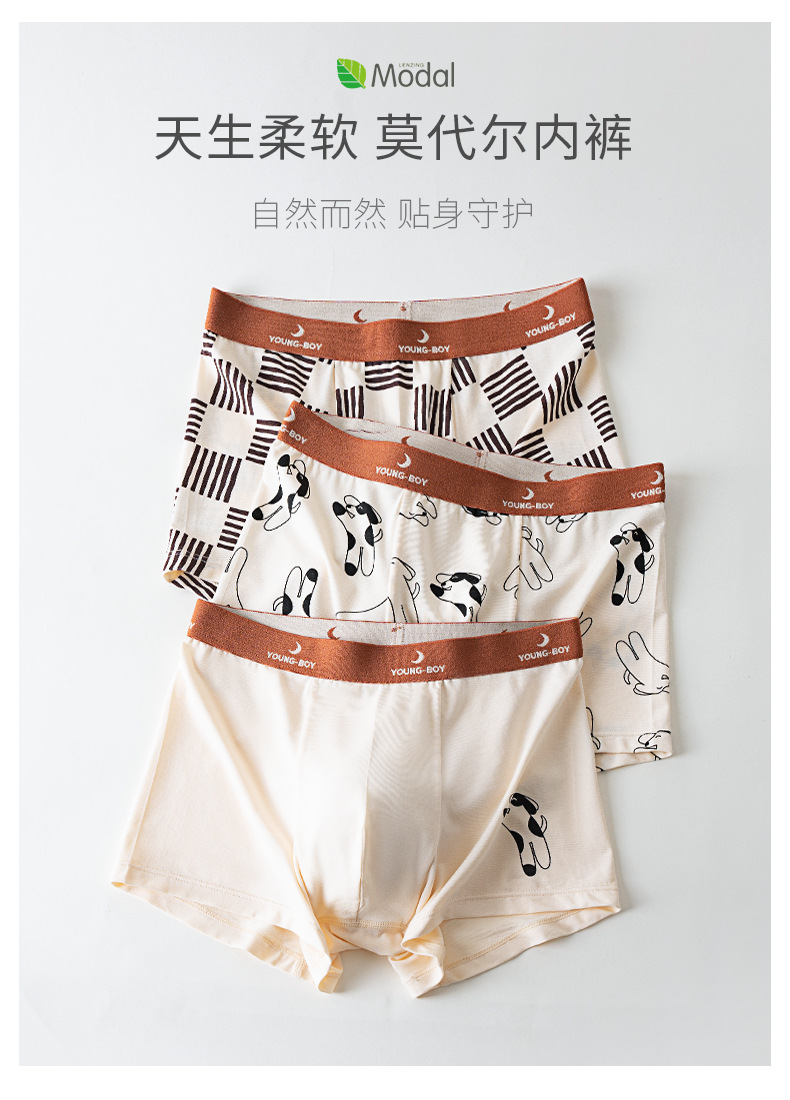 아동 속옷 렌징 모달 10A 항균, 가볍고 흔적이 없는 청소년 및 중년 이상 남아용 복서 팬티 3팩