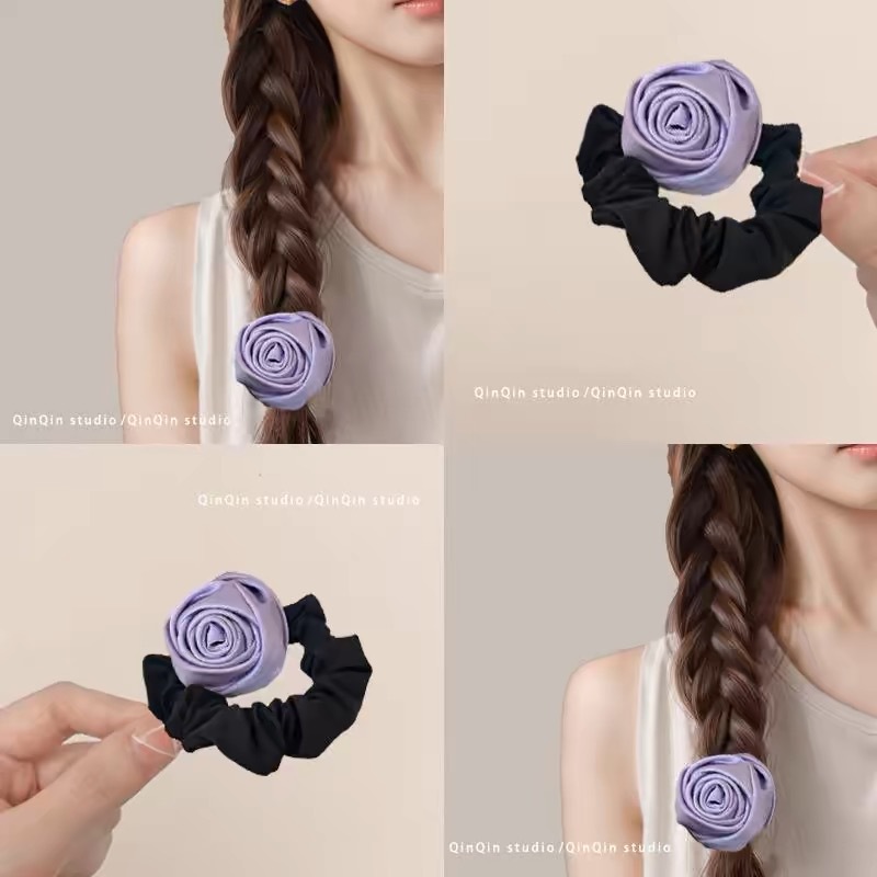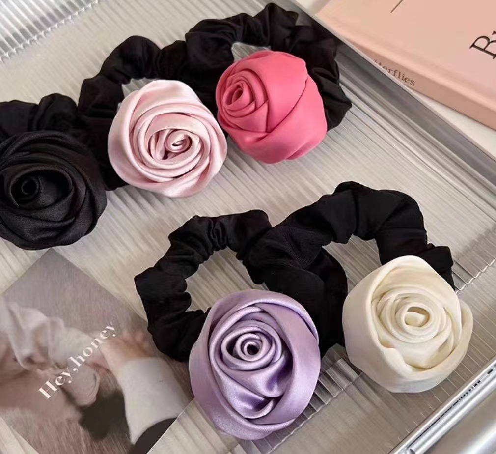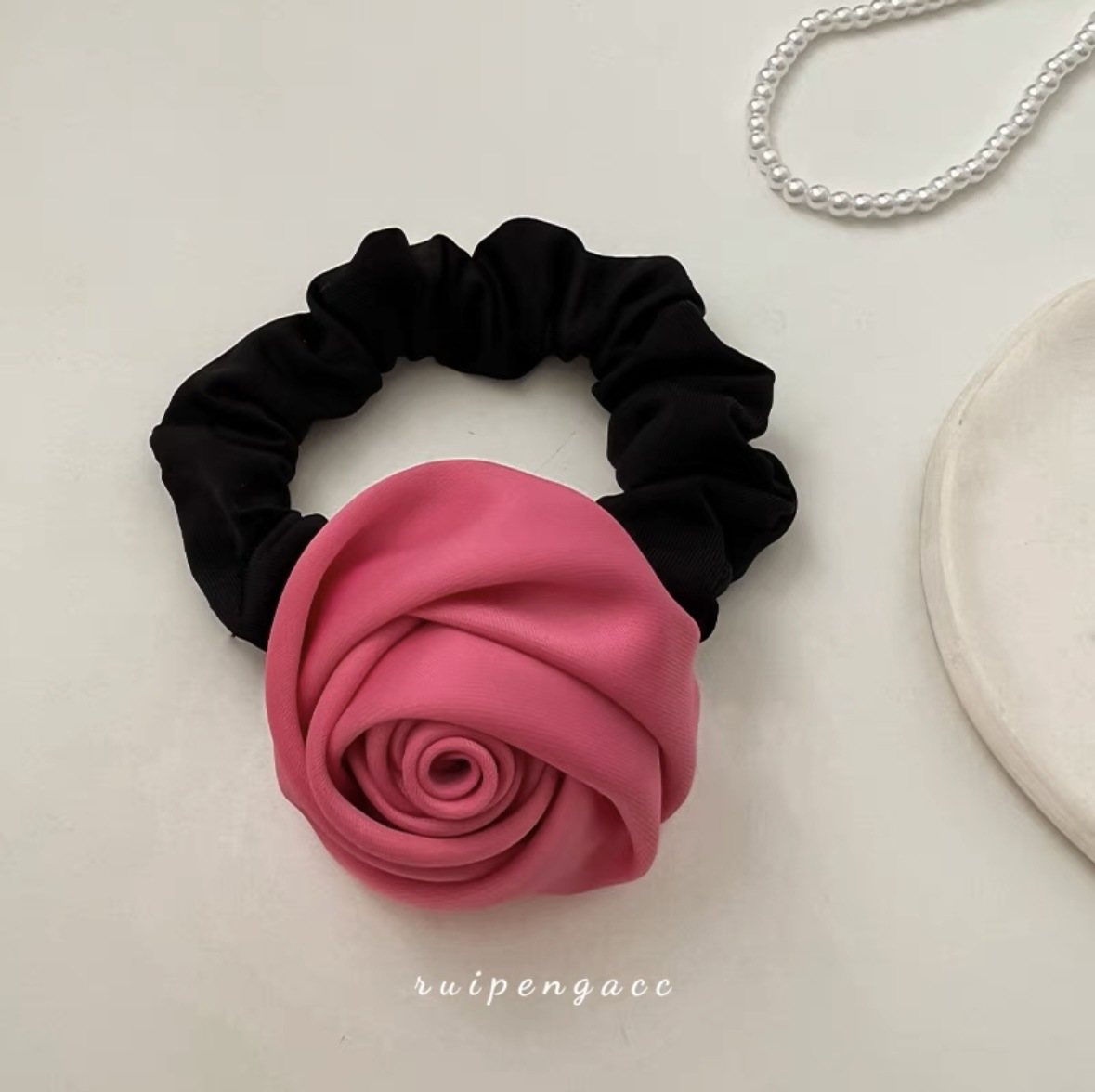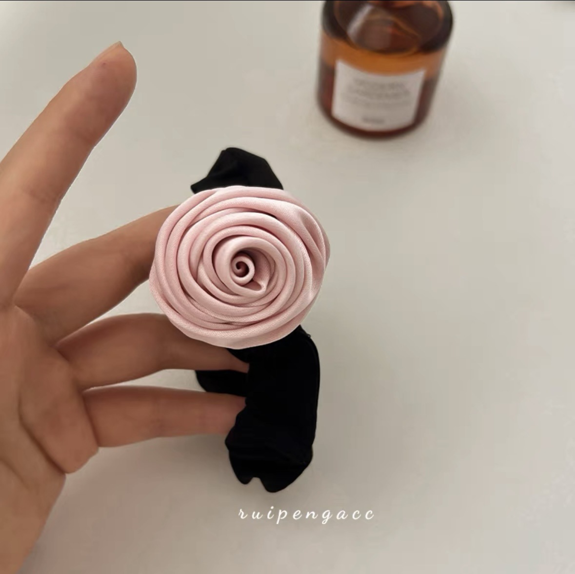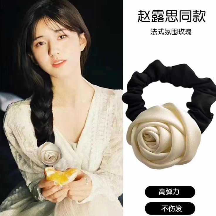 절대 아들! 한국 스타일 심플 새틴 3 차원 로즈 헤어 로프 가죽 밴드 여성 헤어 인텔 헤어 로프 헤어 액세서리