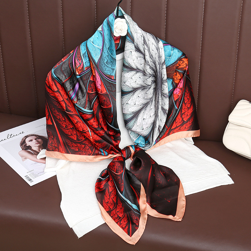 한국식 우아한 민족 여성 발가락 스카프 캐슈 토템 인쇄 새틴 110cm 대형 스퀘어 스카프스토어 가기
