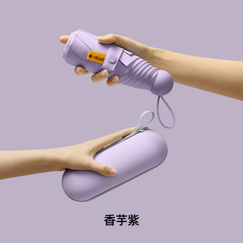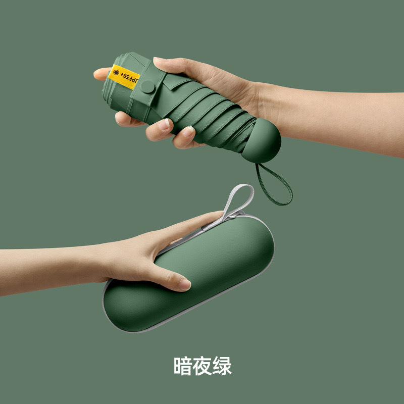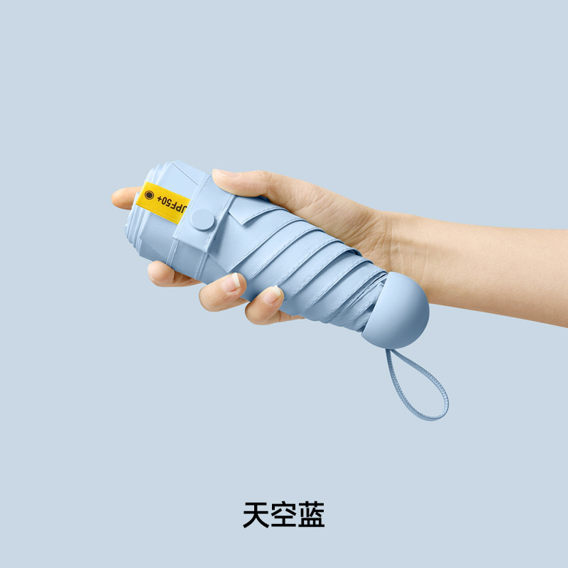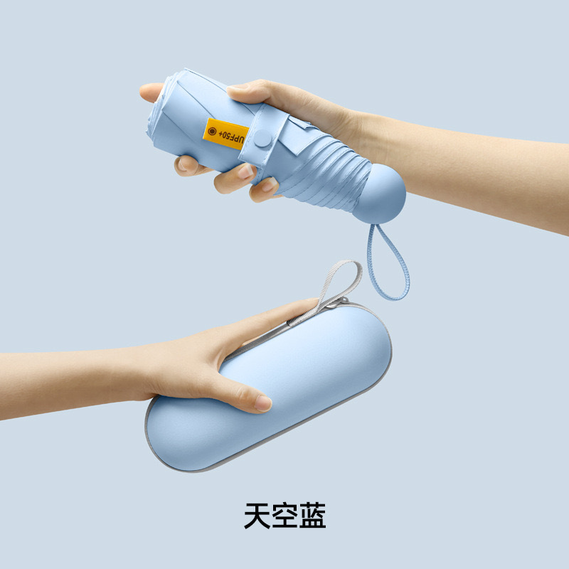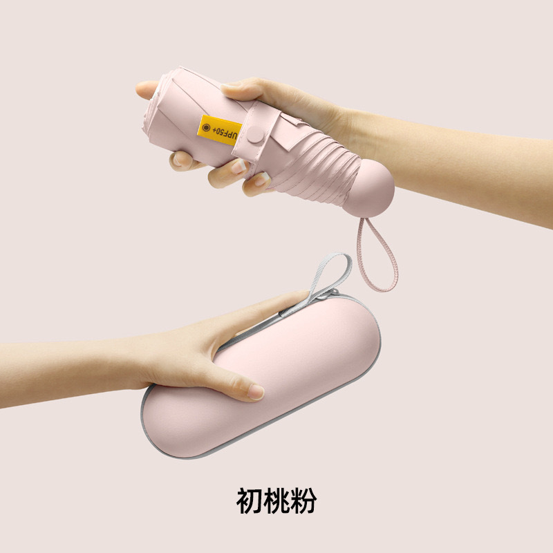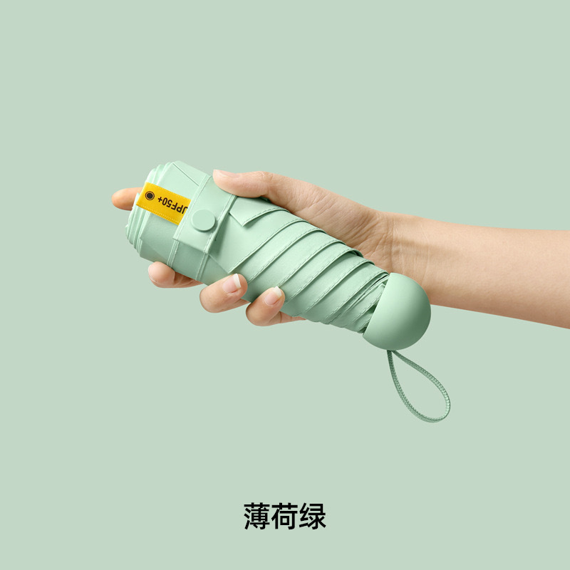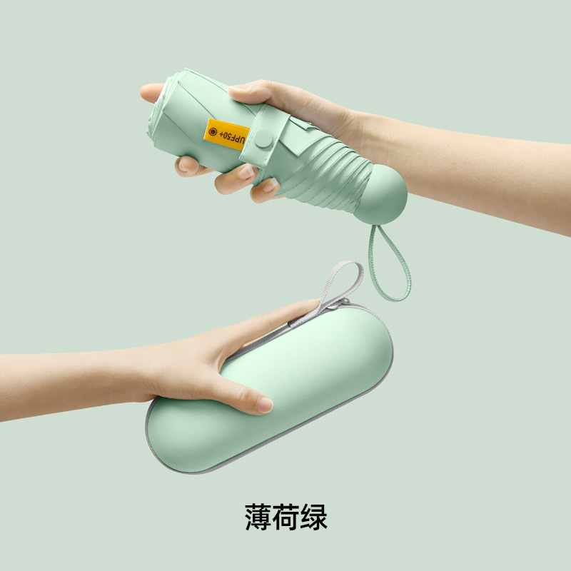 울트라 라이트 태양 우산 선 스크린 UV 보호 여성의 작은 우산 휴대용 캡슐 우산 미니 50% 접은 우산 이중-맑고 비오는