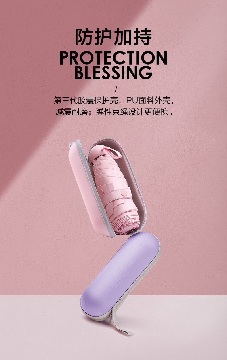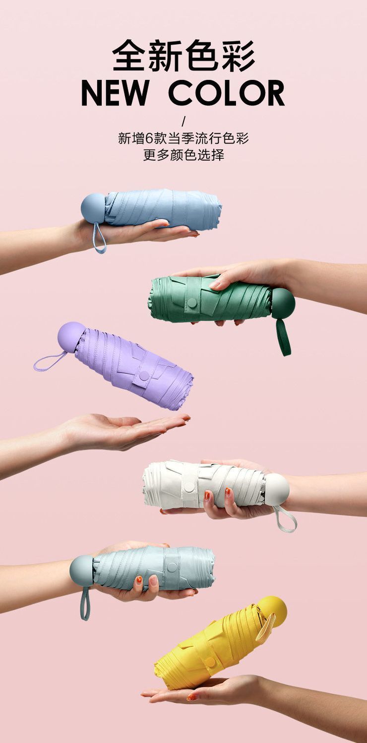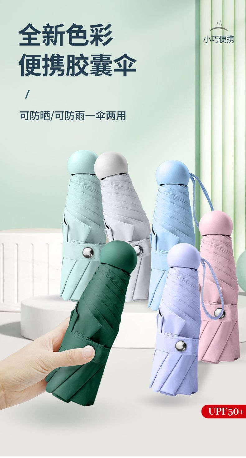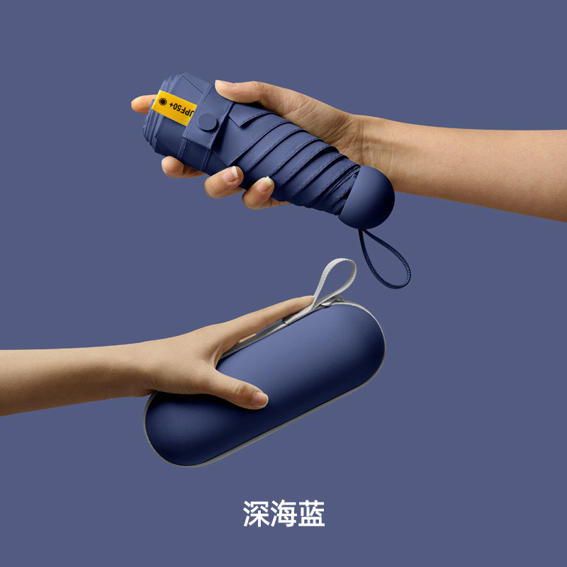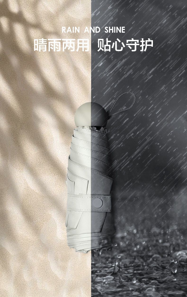 울트라 라이트 태양 우산 선 스크린 UV 보호 여성의 작은 우산 휴대용 캡슐 우산 미니 50% 접은 우산 이중-맑고 비오는