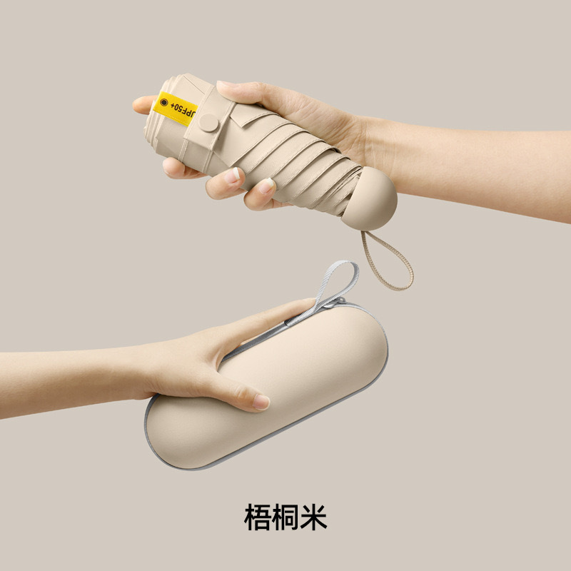 울트라 라이트 태양 우산 선 스크린 UV 보호 여성의 작은 우산 휴대용 캡슐 우산 미니 50% 접은 우산 이중-맑고 비오는스토어 가기