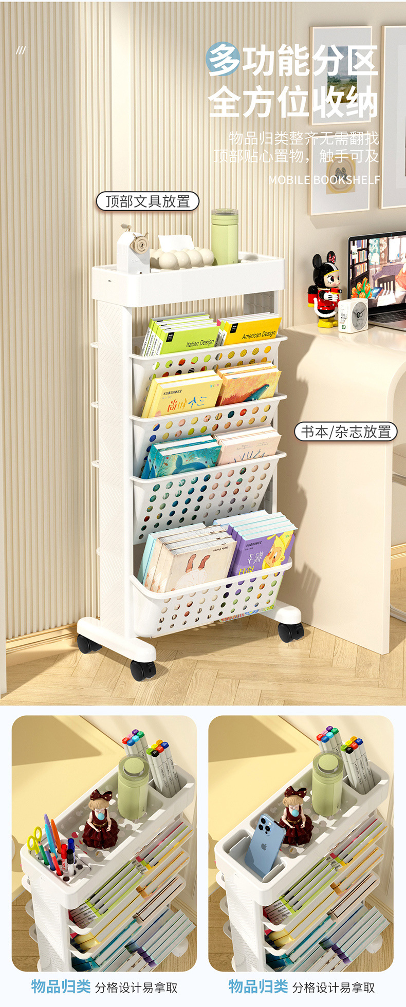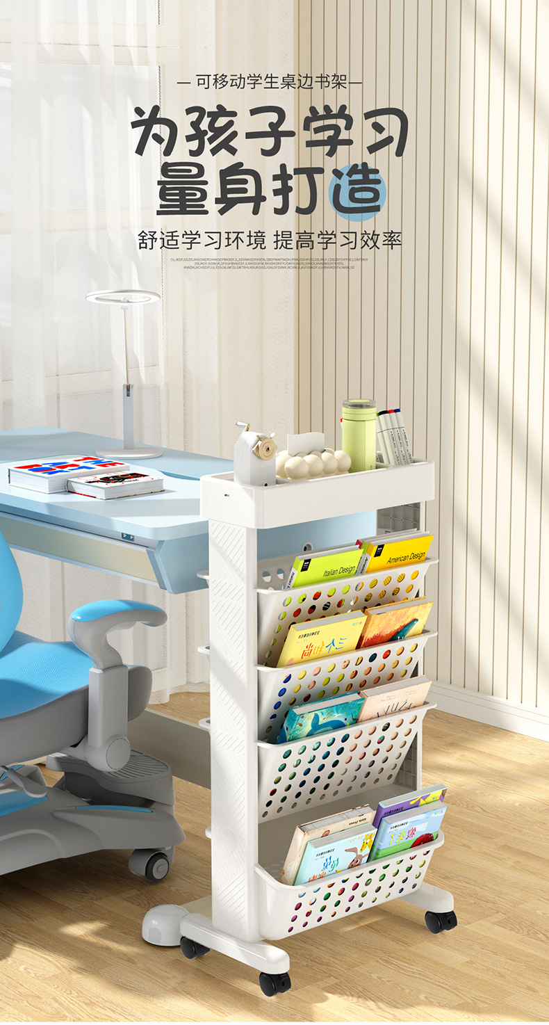 다기능 학생 책상 대용량 책장 이동식 다층 접이식 책상 휴대용 책 보관 랙