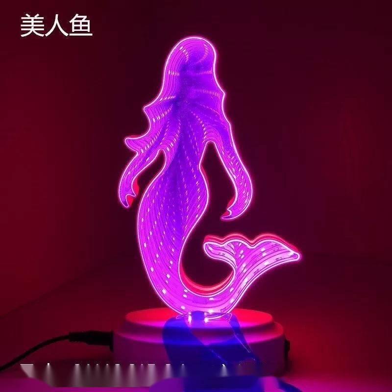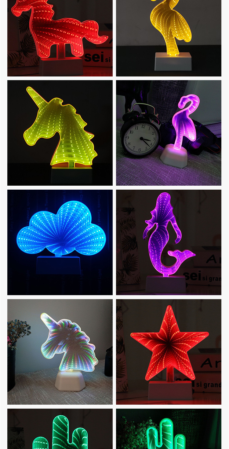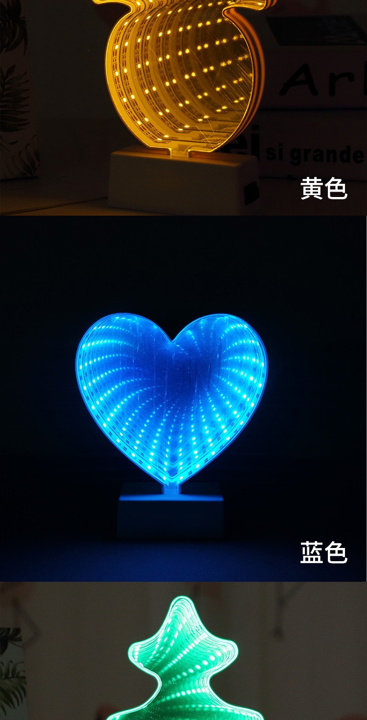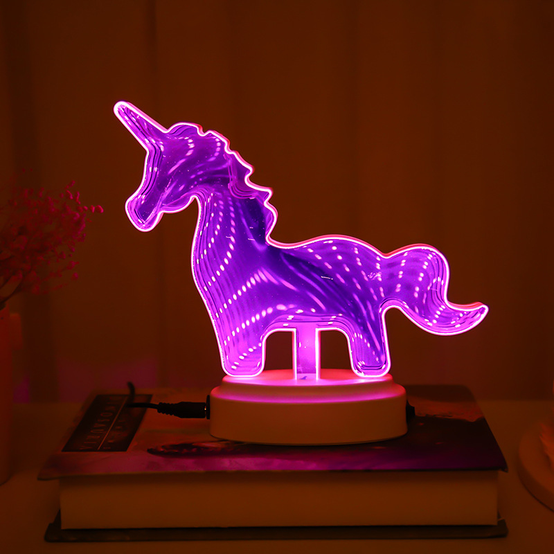 국경을 넘는 LED 미러 터널 조명, 몽환적인 사랑 모양의 동물 머리 조명, 침실 및 서재용 3D 장식 조명, 컬러 조명스토어 가기