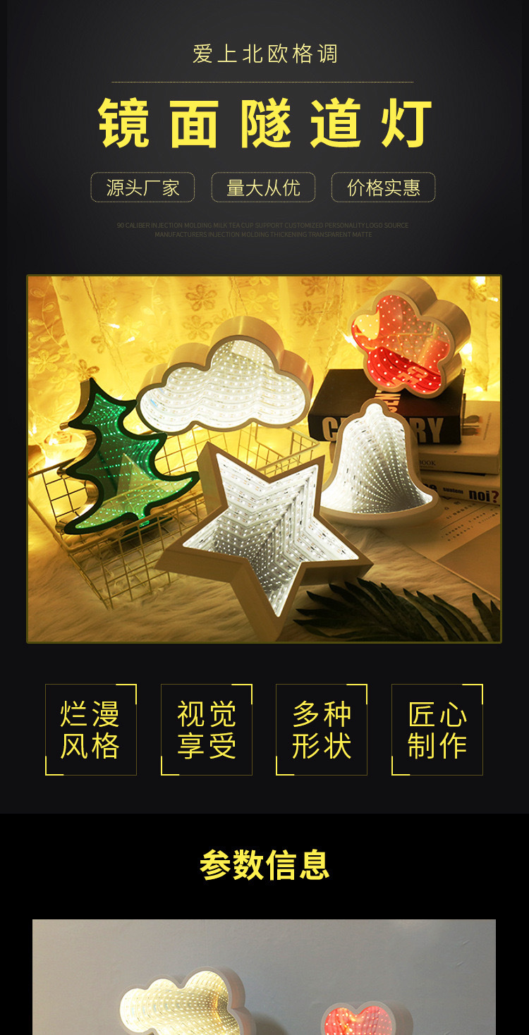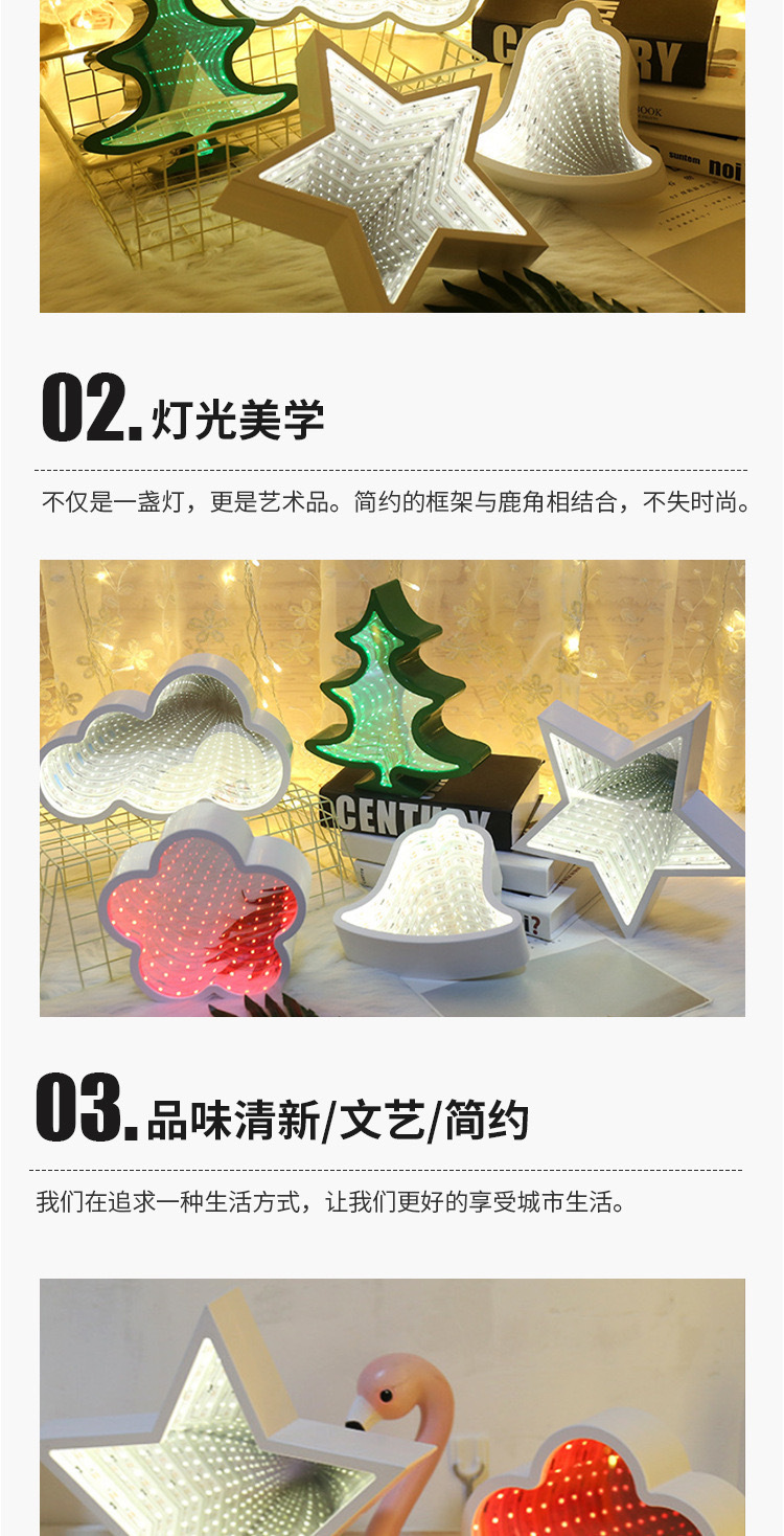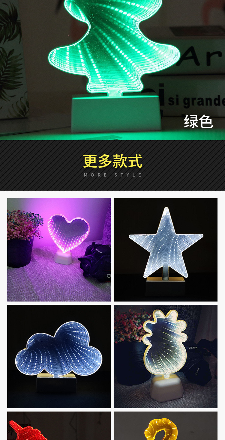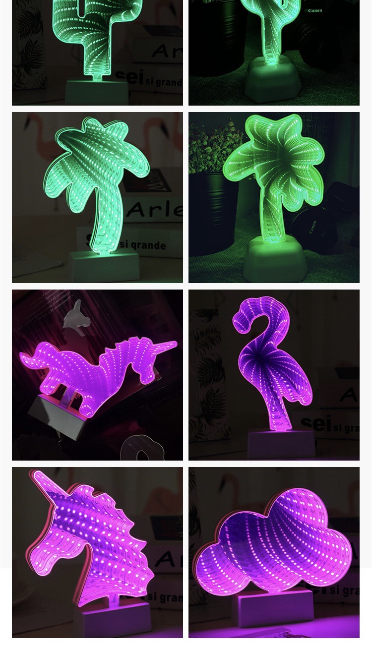 국경을 넘는 LED 미러 터널 조명, 몽환적인 사랑 모양의 동물 머리 조명, 침실 및 서재용 3D 장식 조명, 컬러 조명스토어 가기