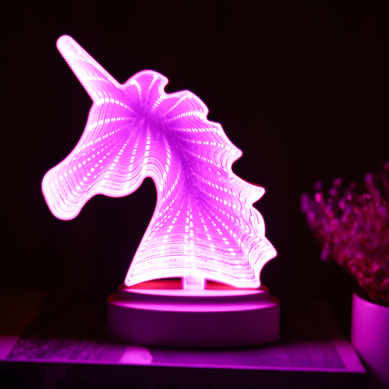 국경을 넘는 LED 미러 터널 조명, 몽환적인 사랑 모양의 동물 머리 조명, 침실 및 서재용 3D 장식 조명, 컬러 조명