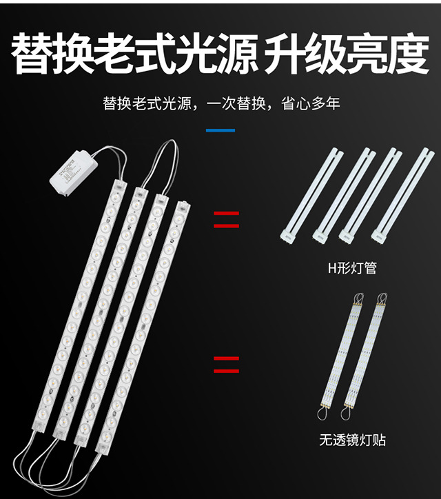 지능형 led 천장 램프 심지 수정 보드 긴 라이트 바 교체 H 튜브 통합 광원 모듈 패치