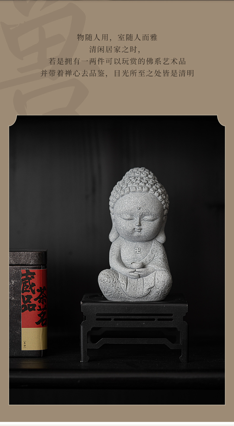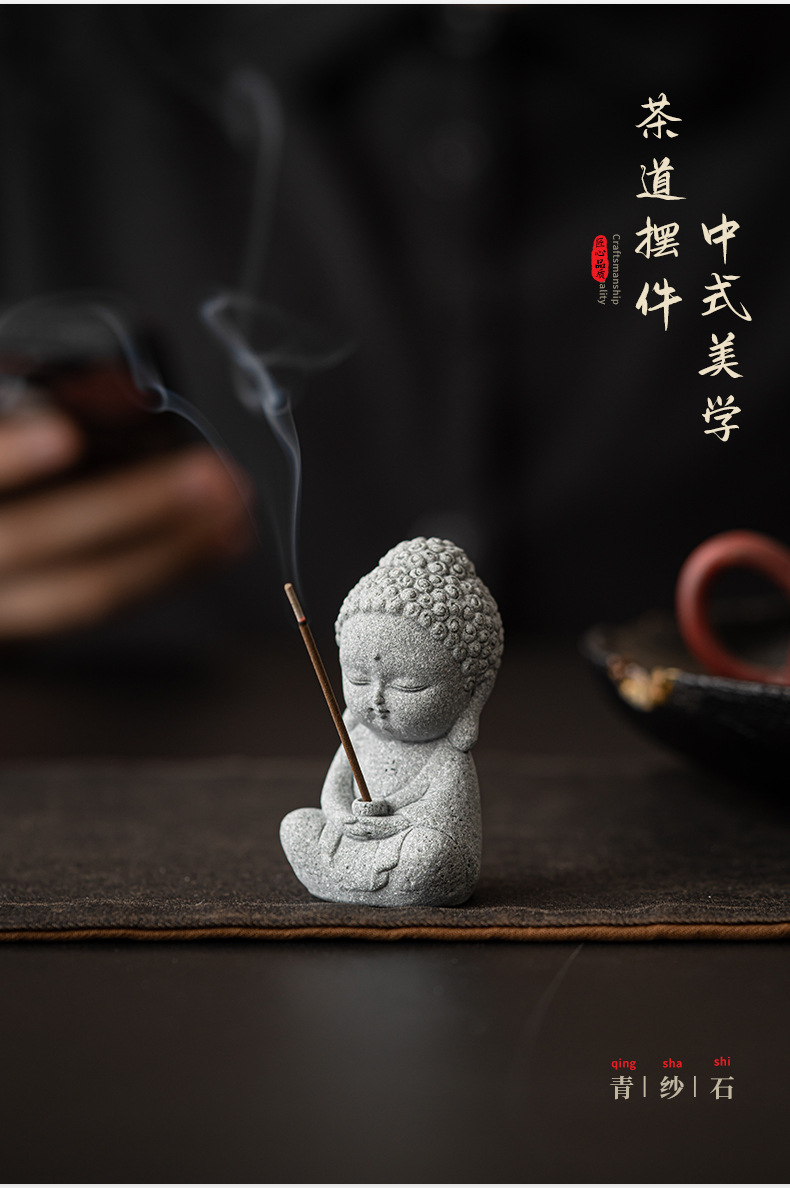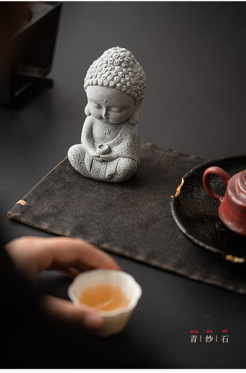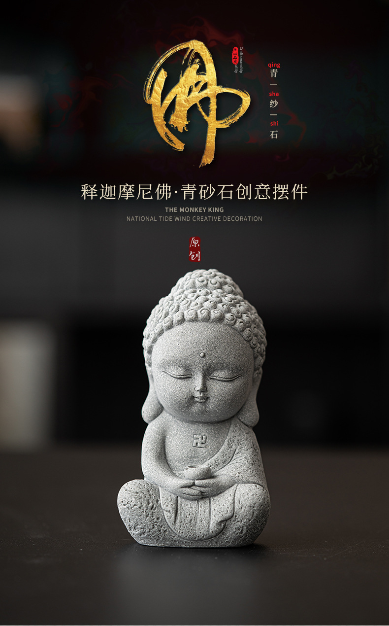 Sakyamuni 장식품 Buddha Bonsai 앉아 부처님 물고기 탱크 풍경 녹색 모래 돌 불상 침수 된 작은 스님 산 원피스