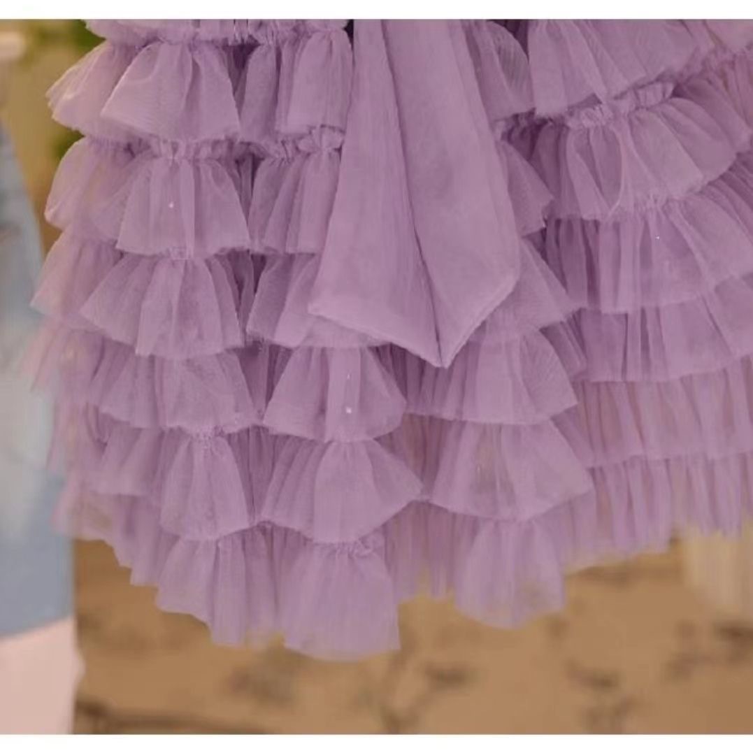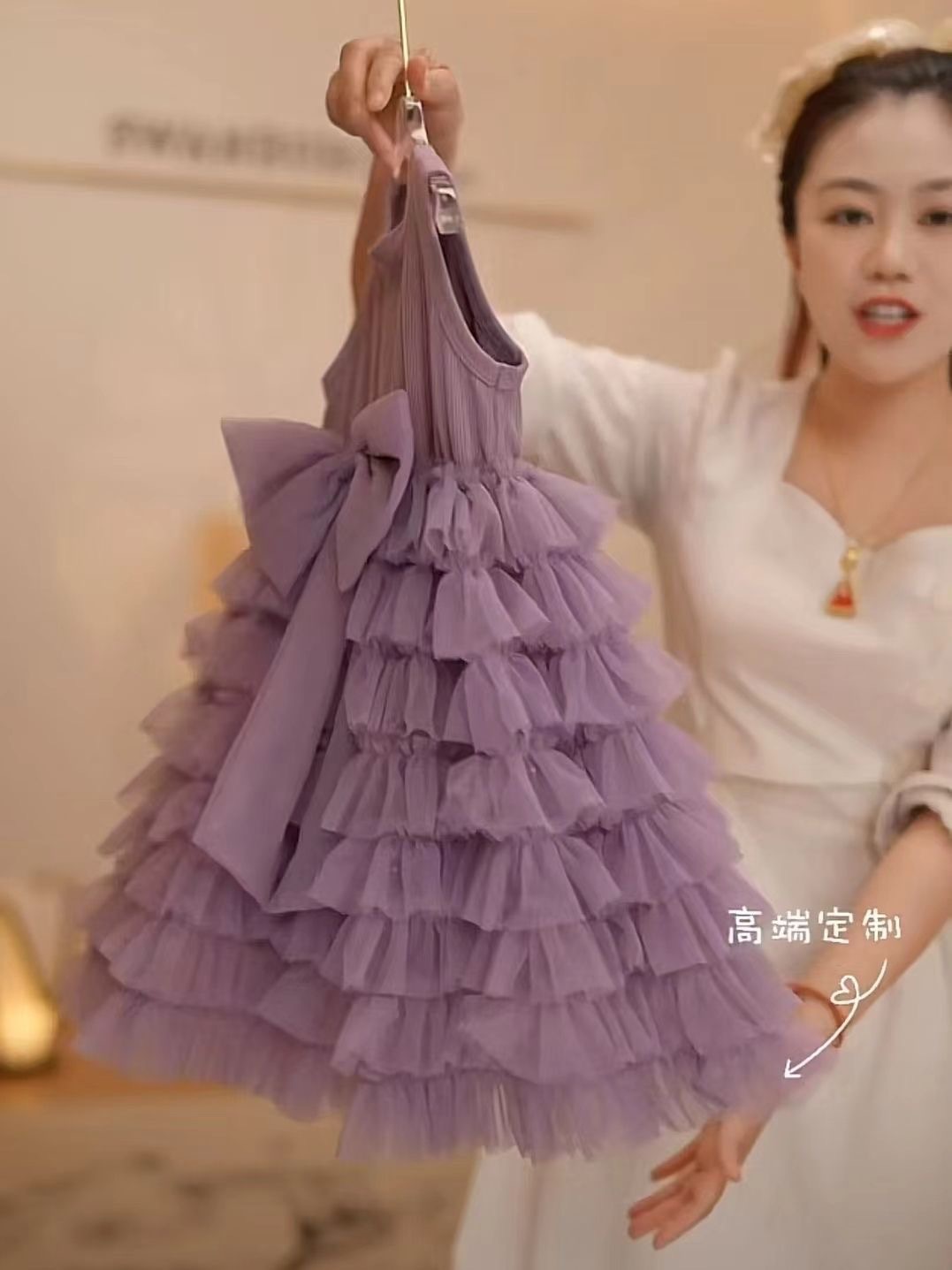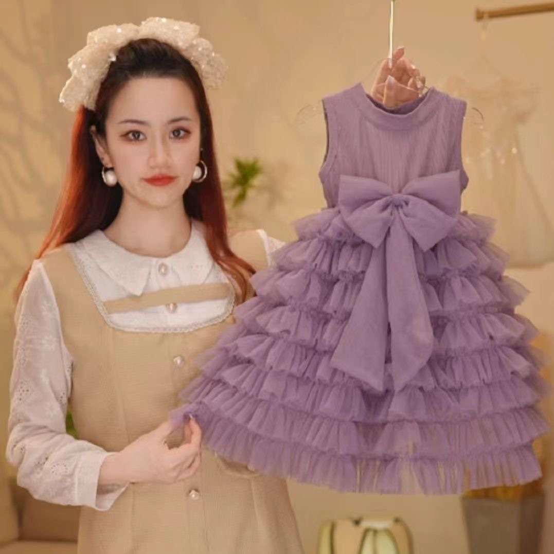 소녀의 원피스 2024 여름 새로운 스타일 서양식 달콤한 귀 퍼프 메쉬 어린이 공주 케이크 여성스토어 가기