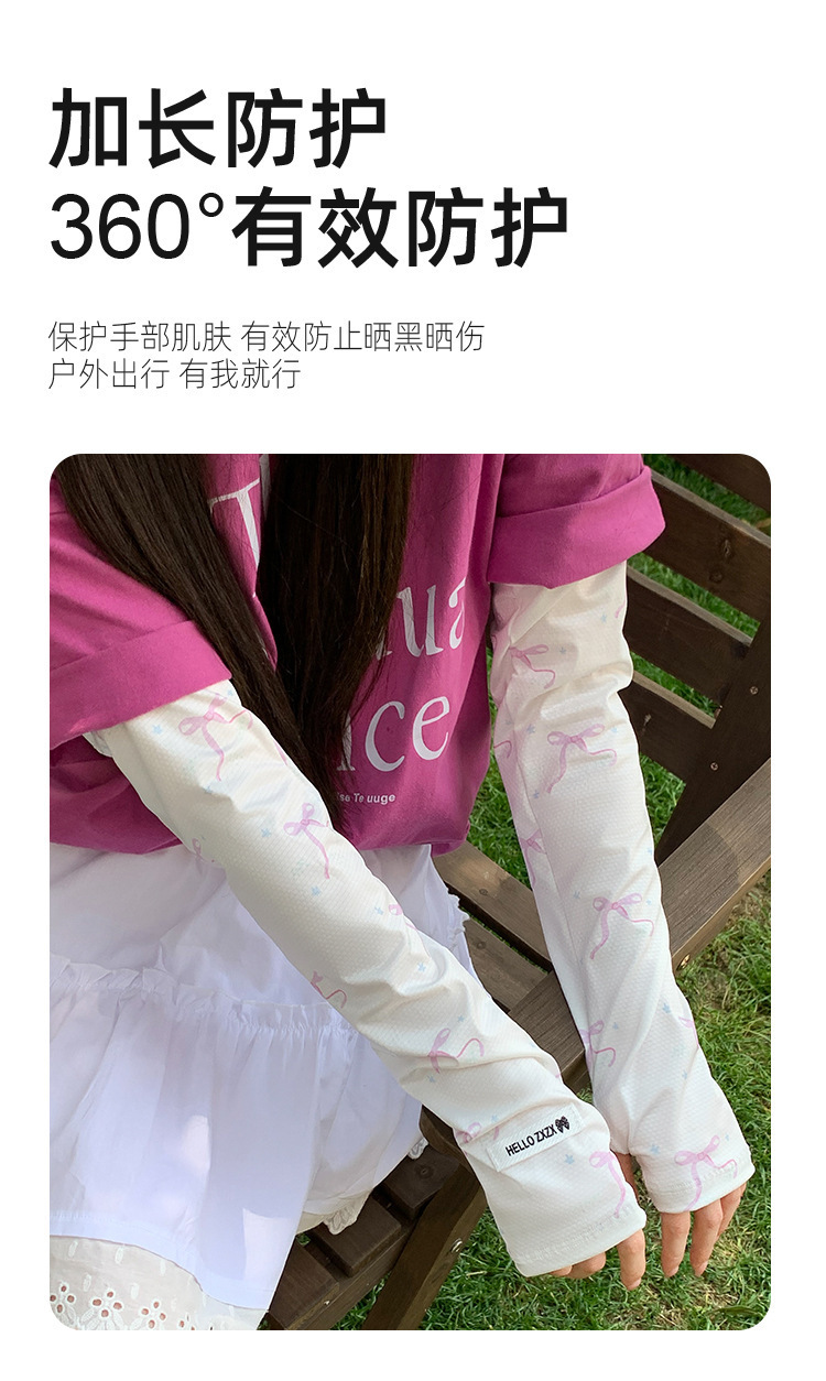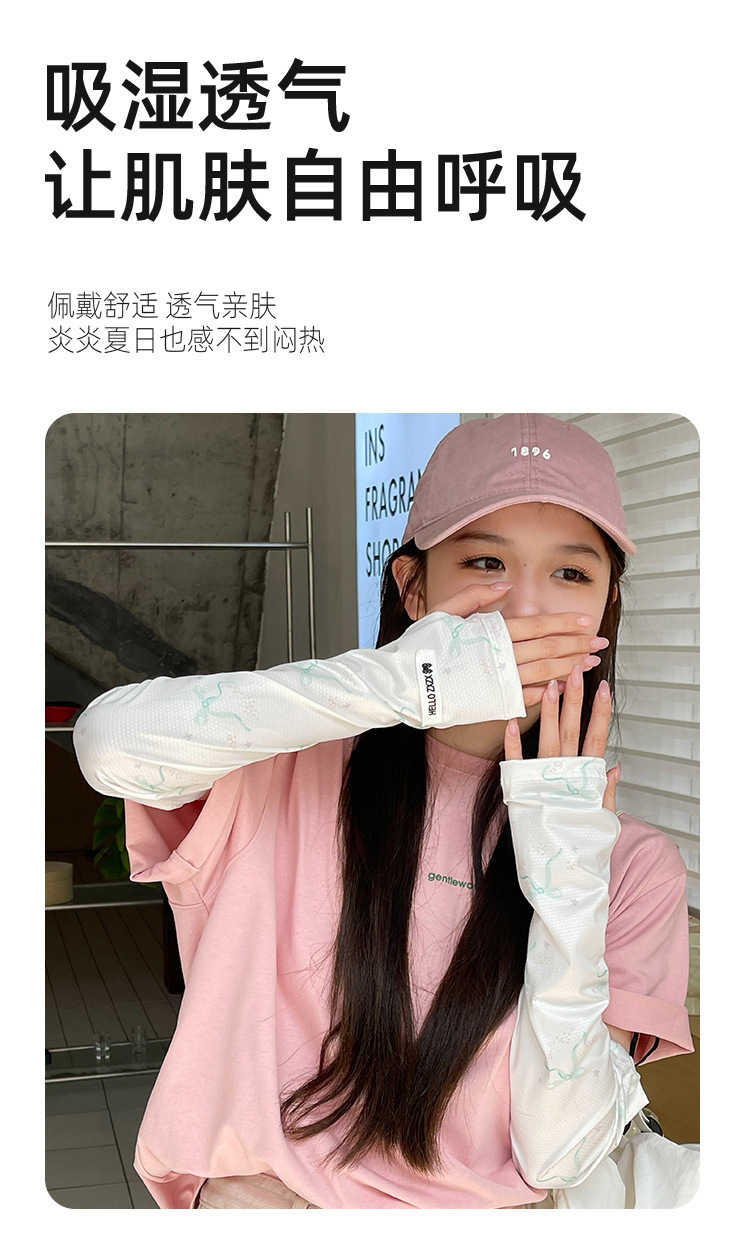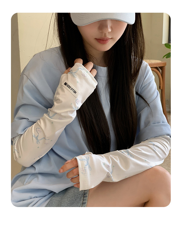 귀여운 가리 스타일 활 인쇄 얼음 소매 여성의 여름 선 스크린 야외 운전 자외선 보호 얇은 얼음 소매스토어 가기
