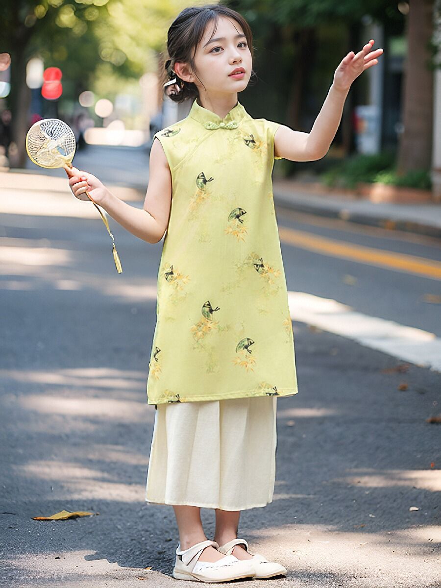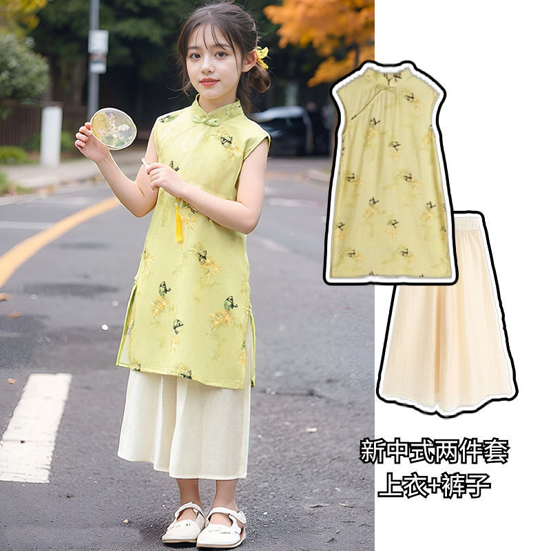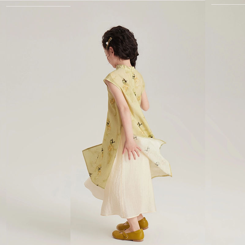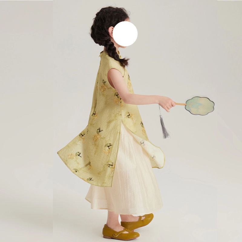 소녀의 원피스 여름 옷 어린이 여름 새로운 중국 스타일 한푸 세트 소녀의 서양식 원피스 중국 스타일 청삼 원피스