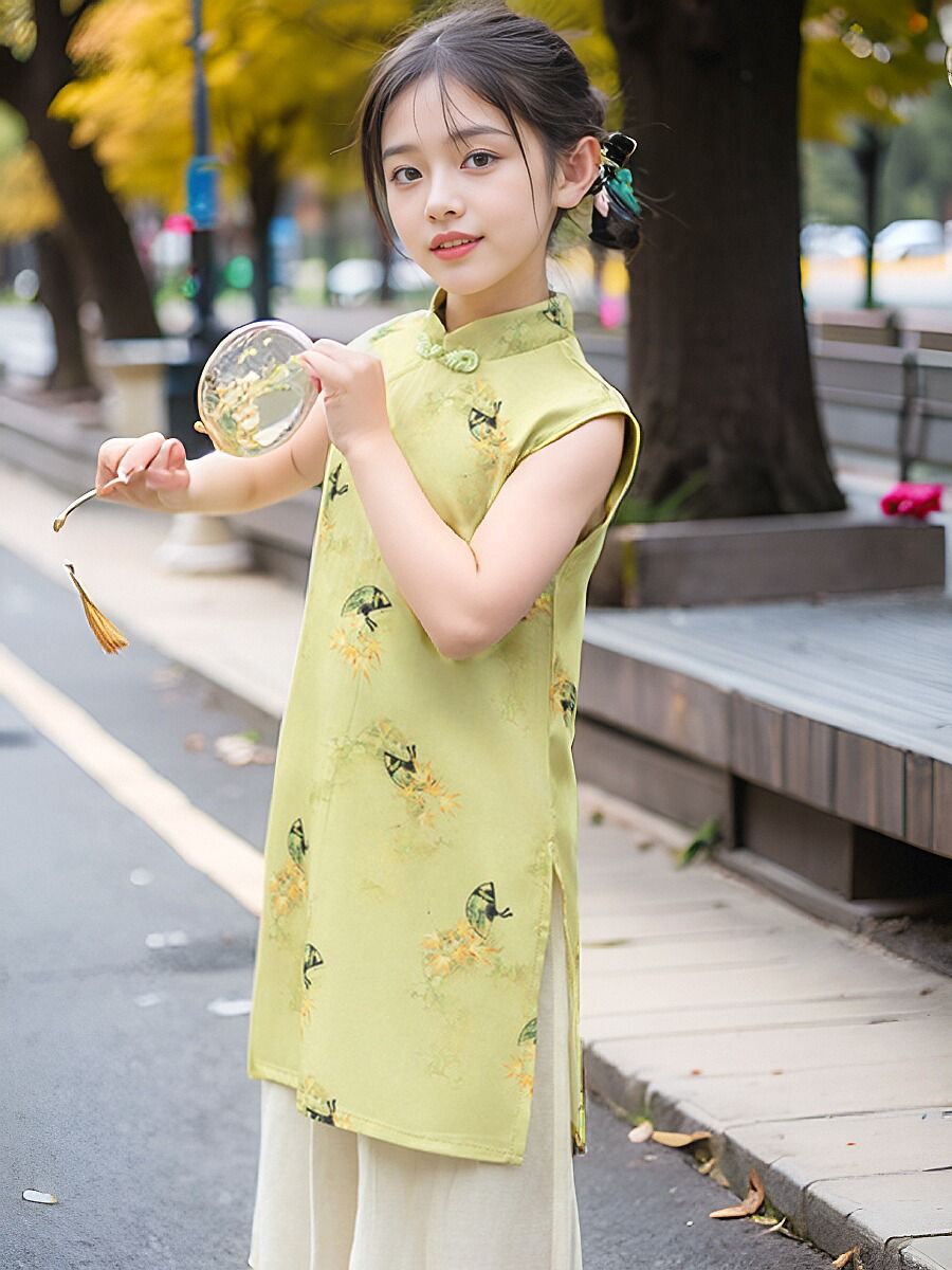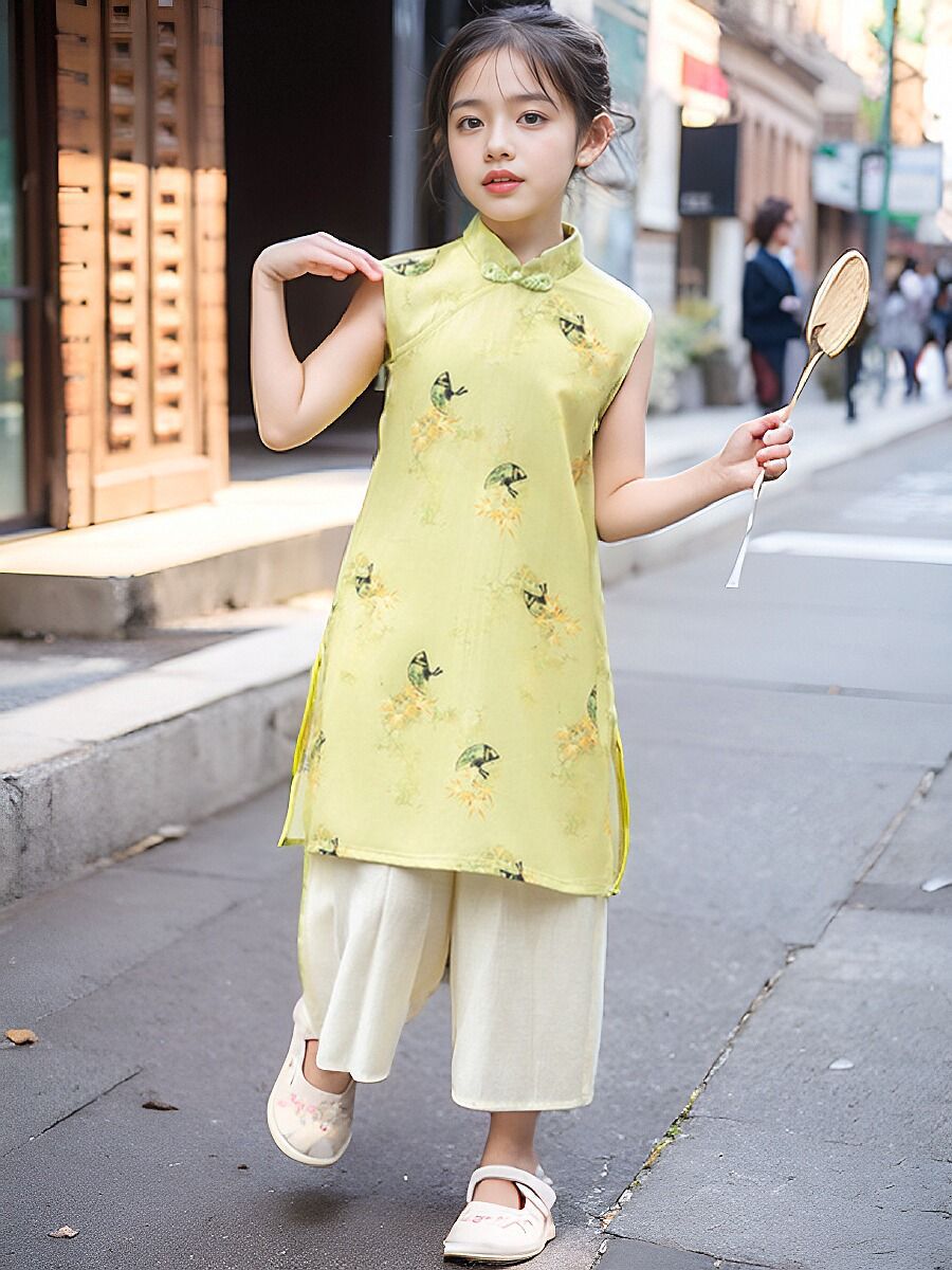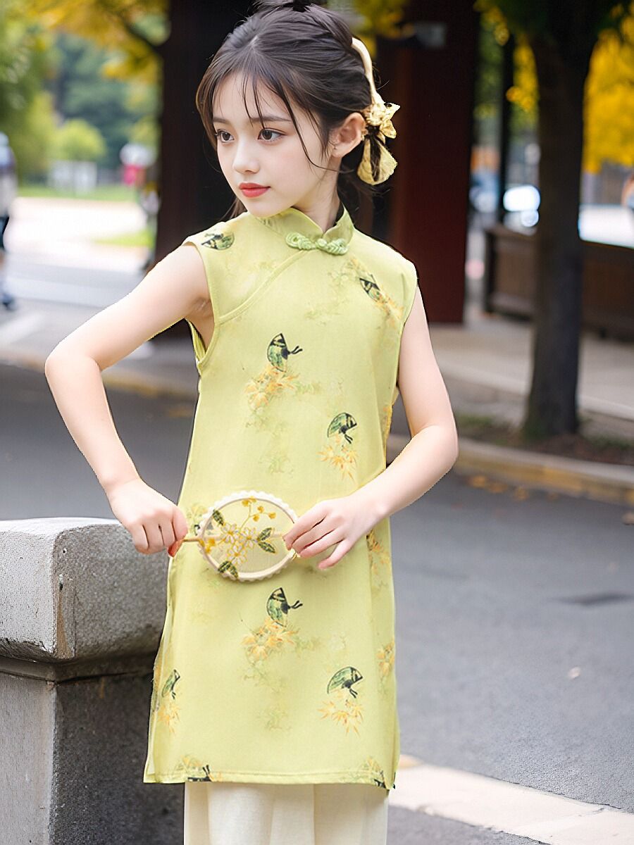소녀의 원피스 여름 옷 어린이 여름 새로운 중국 스타일 한푸 세트 소녀의 서양식 원피스 중국 스타일 청삼 원피스