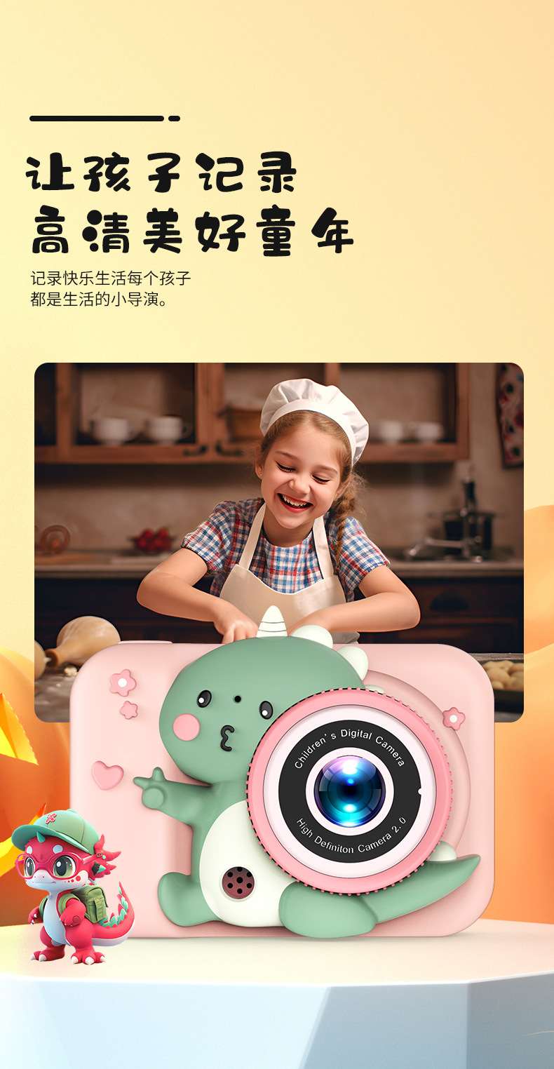 신제품 Q6 어린이 카메라 9600W 고화소 미니 카메라 귀여운 공룡 방수 케이스 사진 촬영 가능 도매스토어 가기