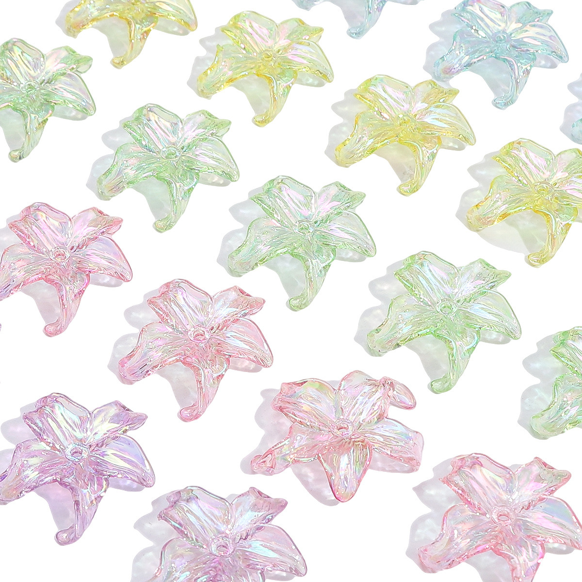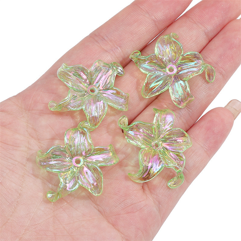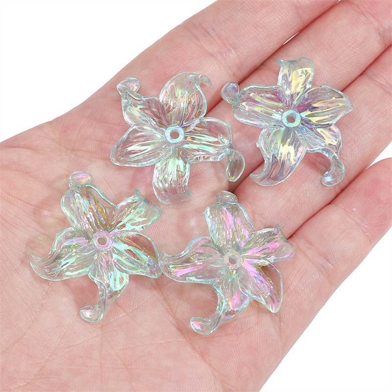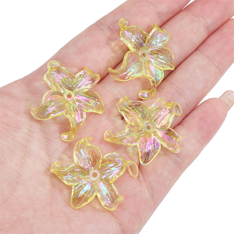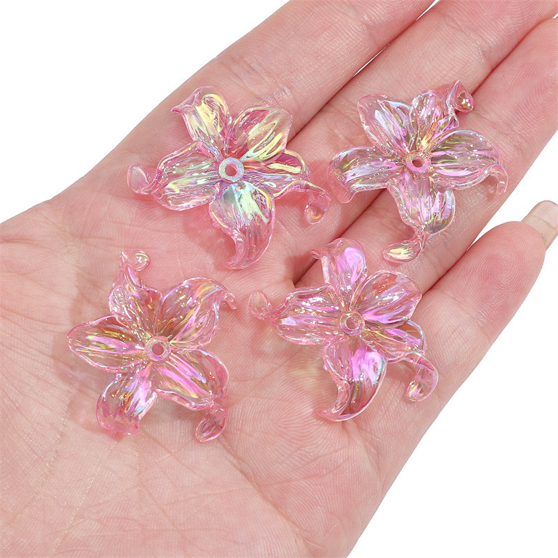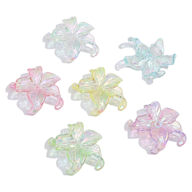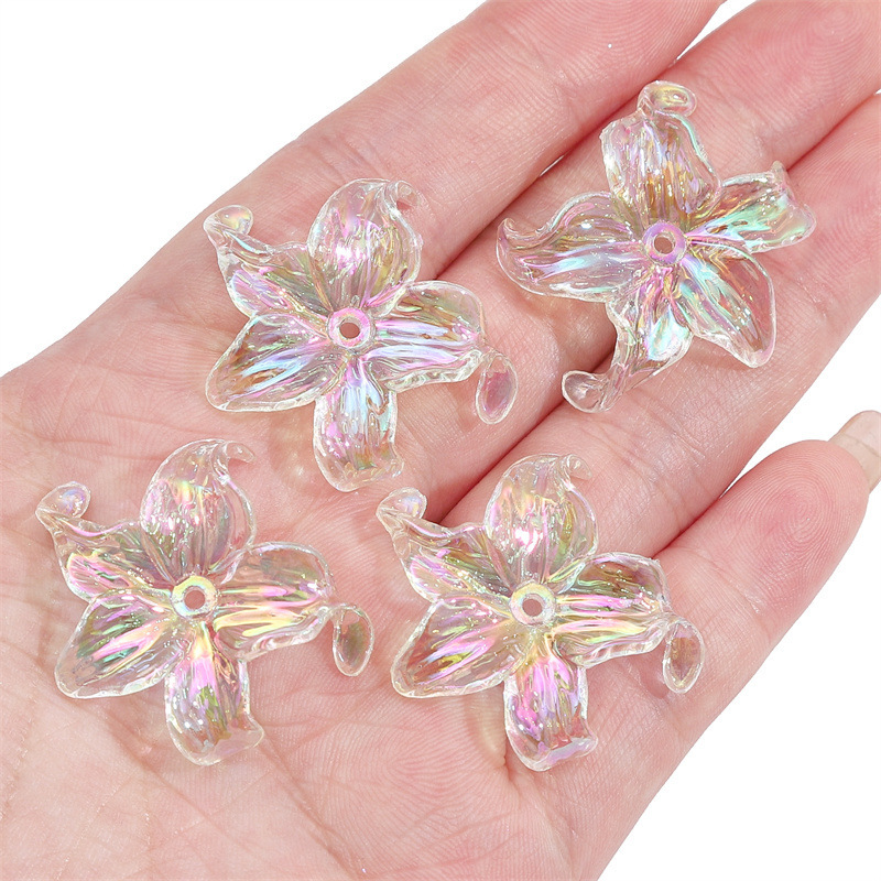 아크릴 구슬 도금 AB 컬러 5 꽃잎 꽃 수제 DIY 느슨한 구슬 보석 펜던트 팔찌 느슨한 구슬 액세서리 소재