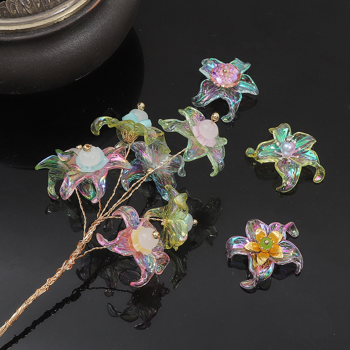 아크릴 구슬 도금 AB 컬러 5 꽃잎 꽃 수제 DIY 느슨한 구슬 보석 펜던트 팔찌 느슨한 구슬 액세서리 소재스토어 가기