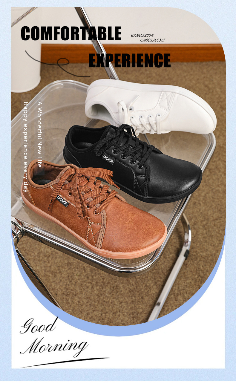 크로스-보더 뉴 스타일 와이드 헤드 맨발 신발 경량 소프트 솔 남성 야외 운동화 로우 탑 레이스 업 가죽 캐주얼 신발 남성용