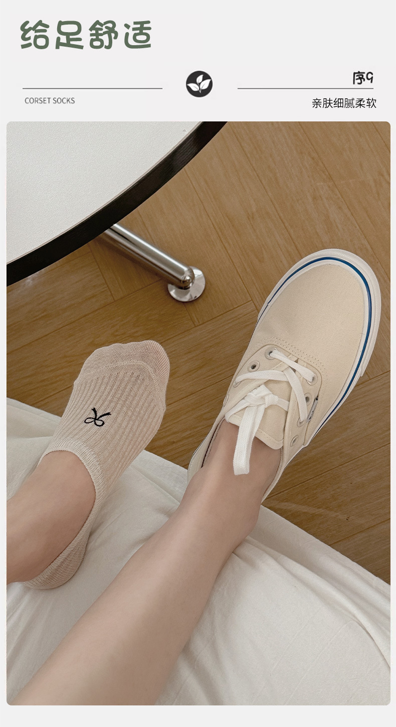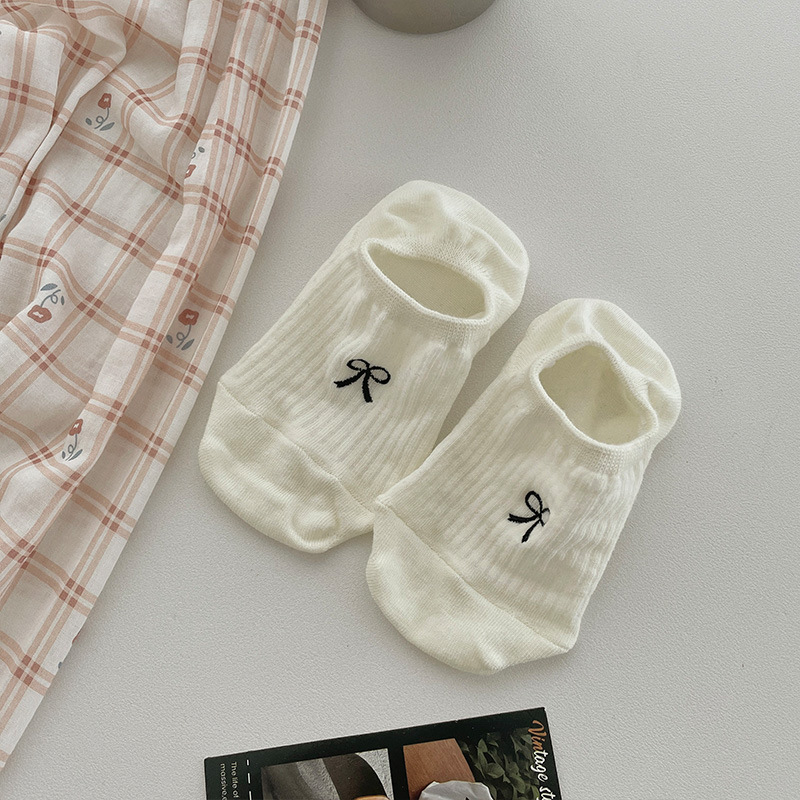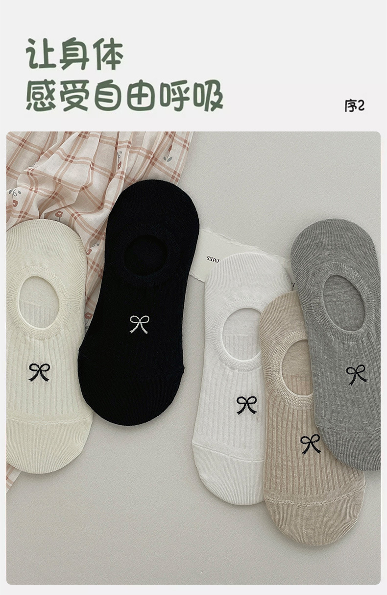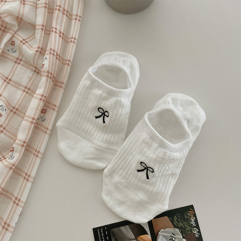 24 봄과 여름 새로운 한국 단색 활 자수 실리콘 미끄럼 보이지 않는 양말 여성용 얕은 입이 보트 양말에 떨어지지 않습니다.스토어 가기