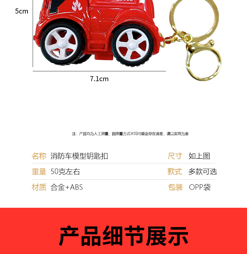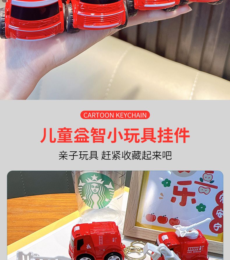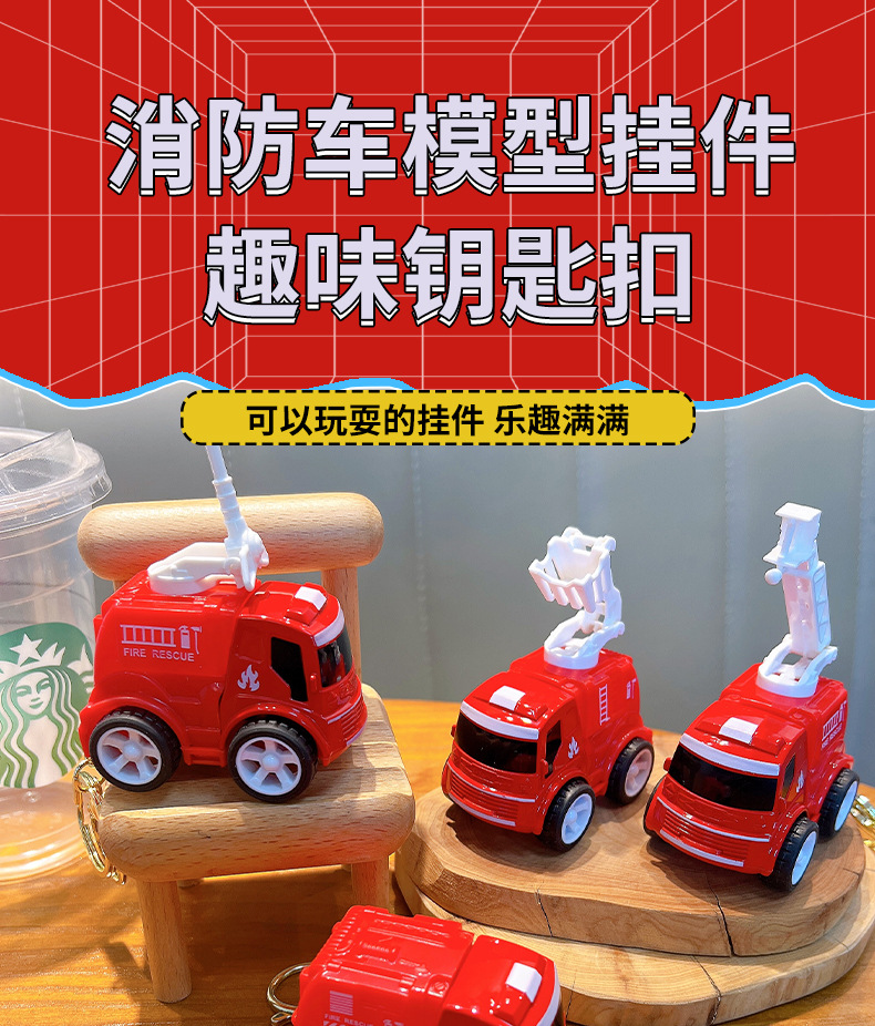 크리 에이 티브 미니 소방차 키 체인 만화 백 자동차 키 체인 가방 펜던트 작은 선물 도매