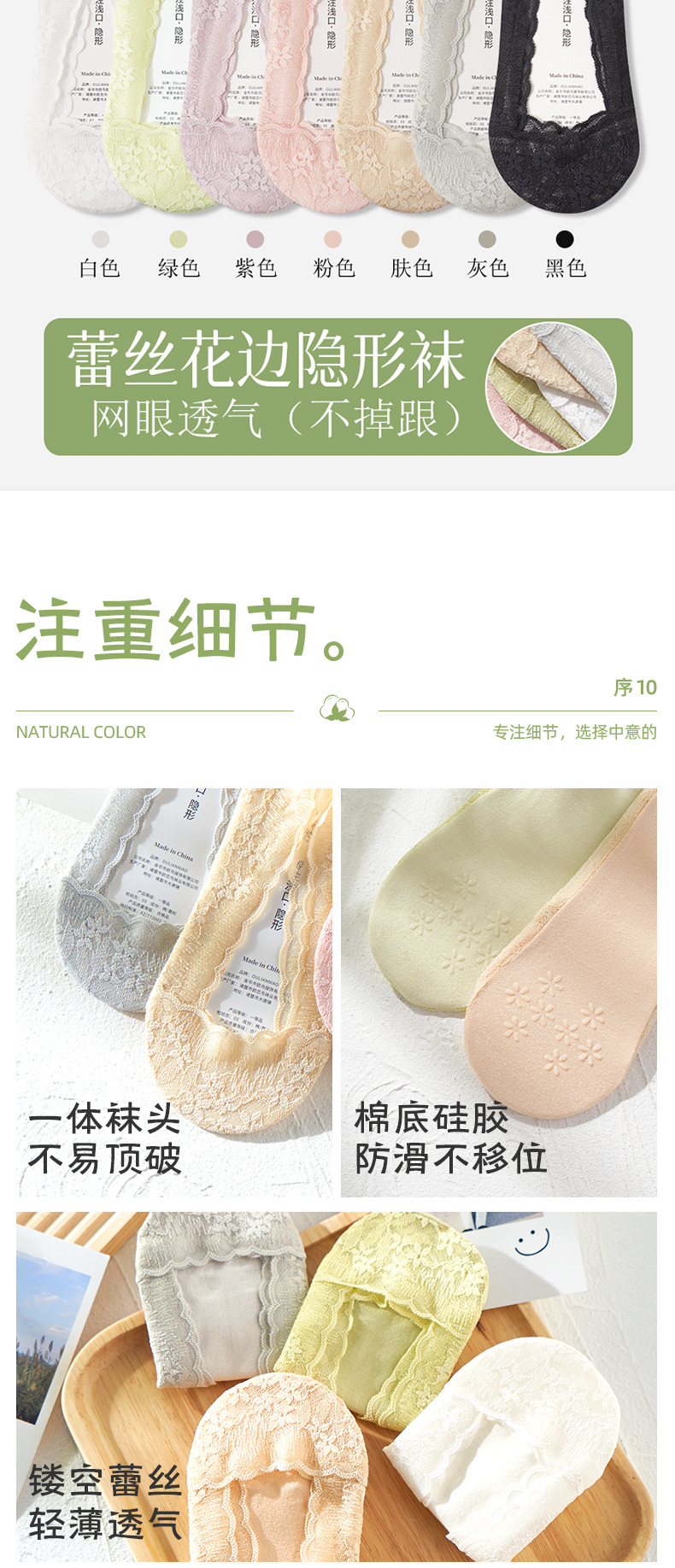 레이스 보트 양말 여성면 하단 얕은 짧은 양말 미끄럼 방지 실리콘 여름 얇은 달콤한 스타일 여름 보이지 않는 양말