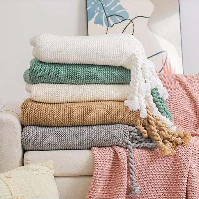북유럽 스타일 아울렛 소파 커버 담요 수제 브레이드 홈스테이 침대 끝 담요 침대 커버 침대 짠 담요 호텔 침대 끝 수건
