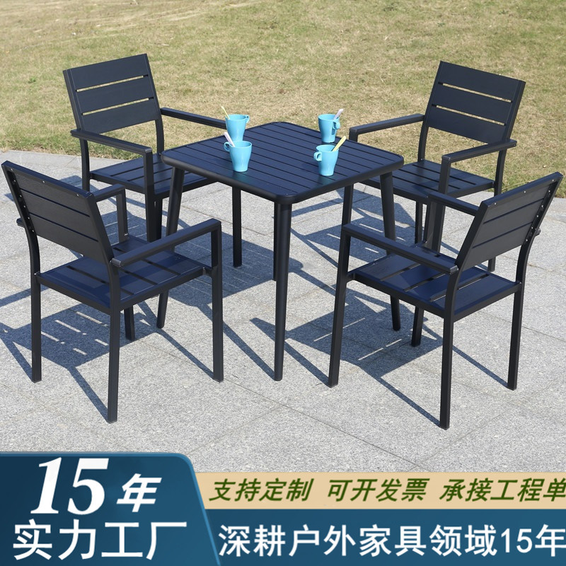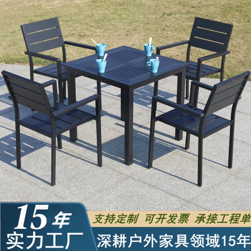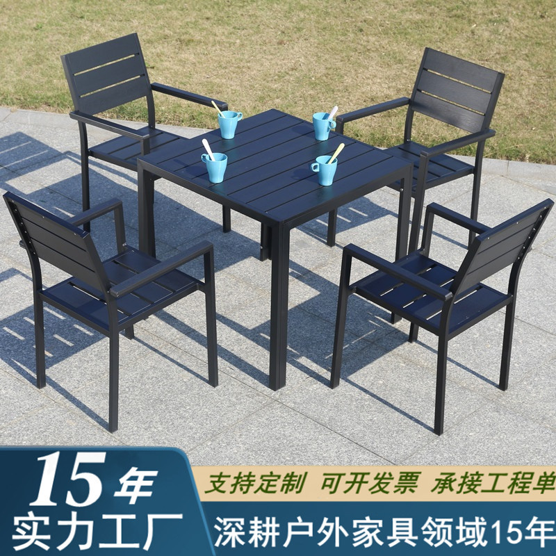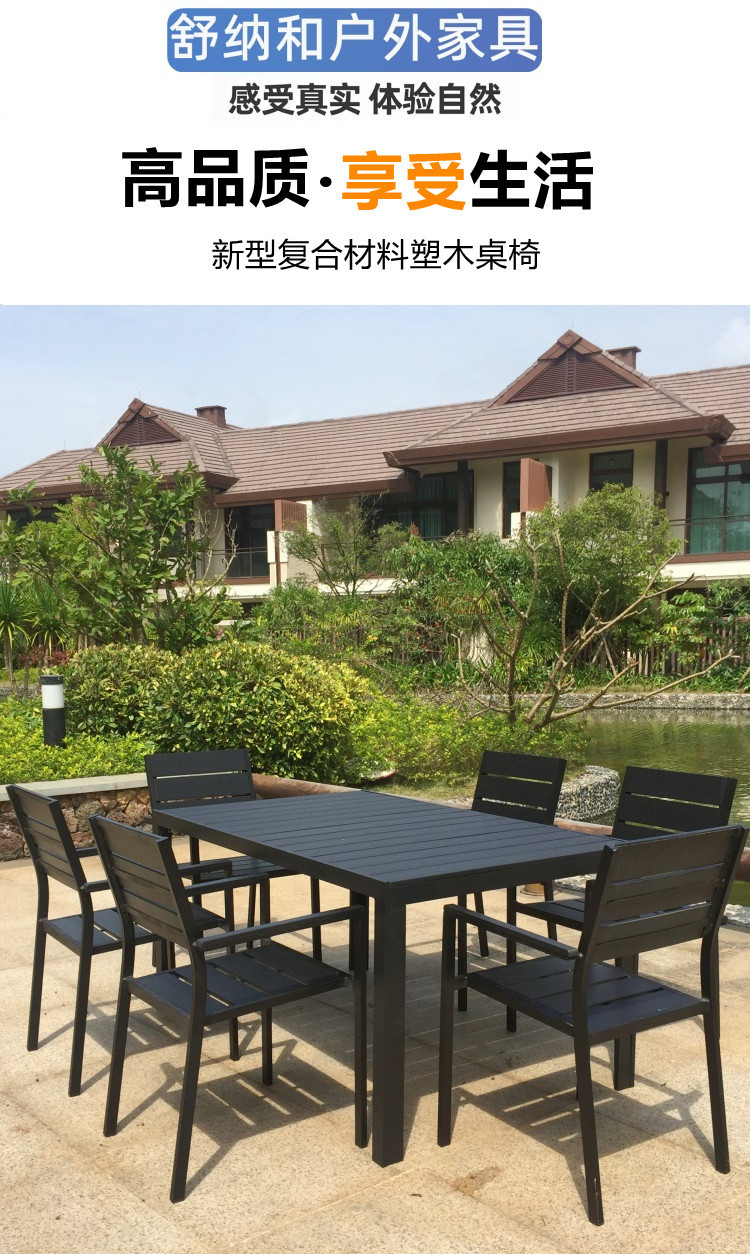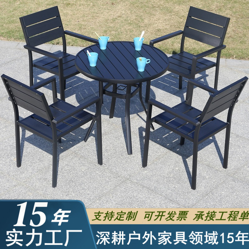 플라스틱 목재 테이블과 의자, 현대적이고 심플한 디자인의 야외 테라스, 빌라 테라스 테이블, 호텔 레저 테이블, 원형 테이블, 의자, 식탁스토어 가기