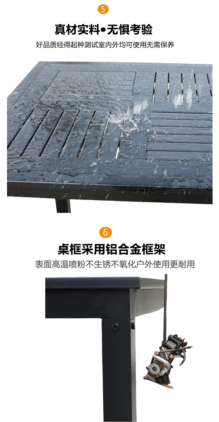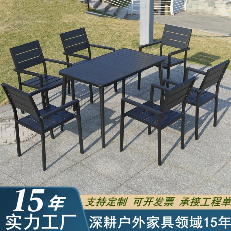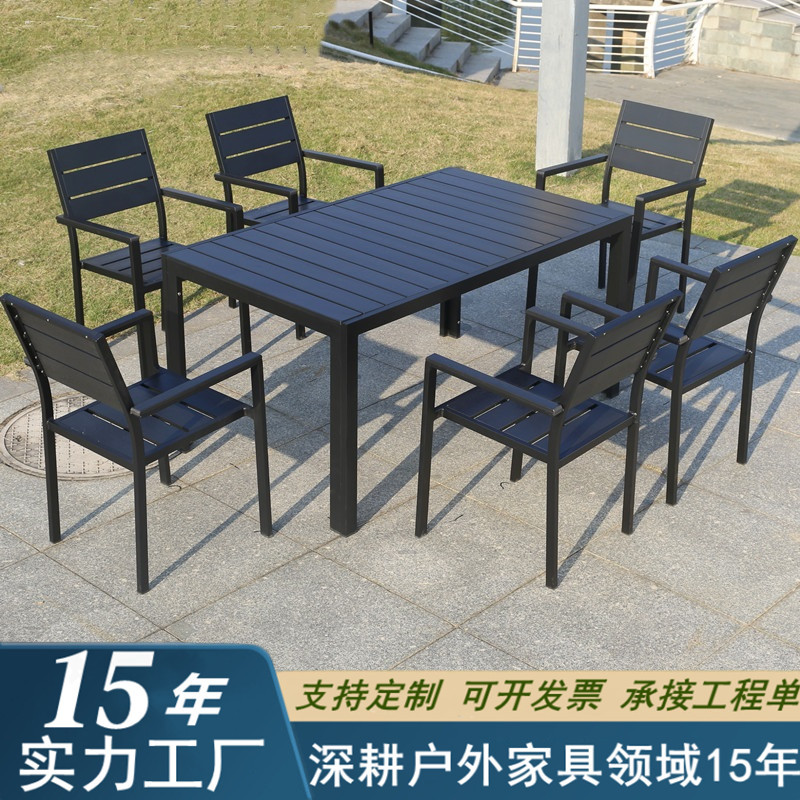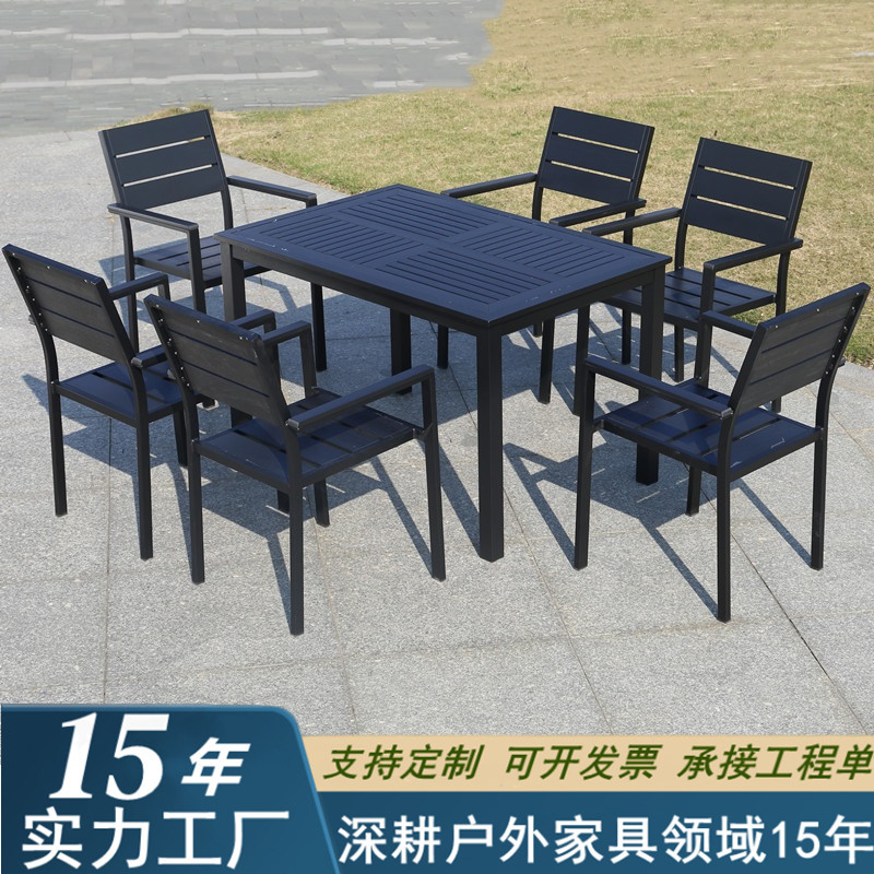 플라스틱 목재 테이블과 의자, 현대적이고 심플한 디자인의 야외 테라스, 빌라 테라스 테이블, 호텔 레저 테이블, 원형 테이블, 의자, 식탁스토어 가기
