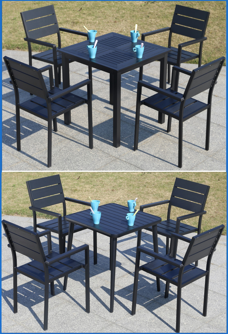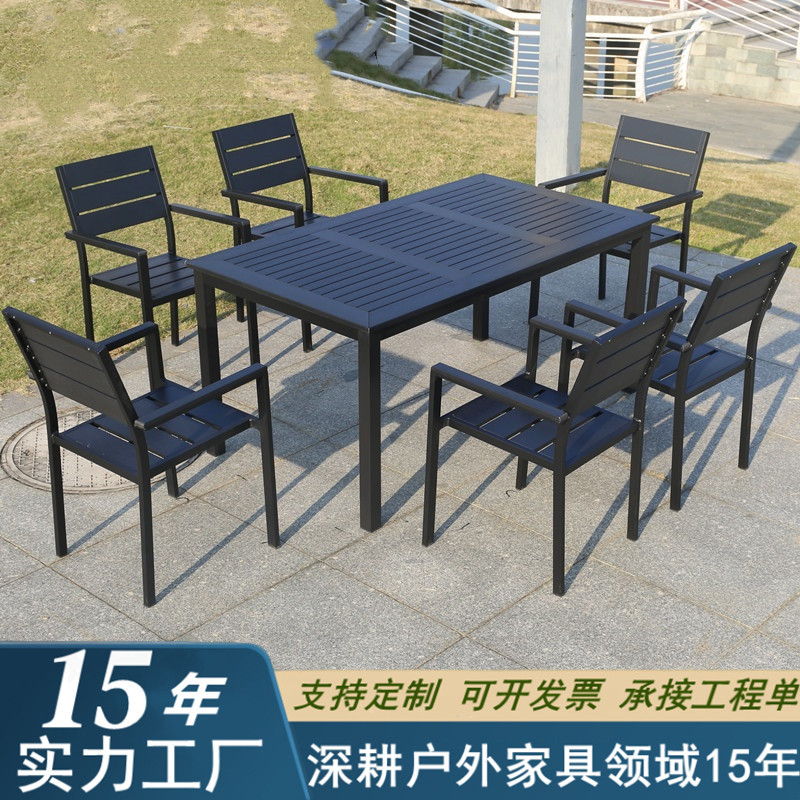 플라스틱 목재 테이블과 의자, 현대적이고 심플한 디자인의 야외 테라스, 빌라 테라스 테이블, 호텔 레저 테이블, 원형 테이블, 의자, 식탁