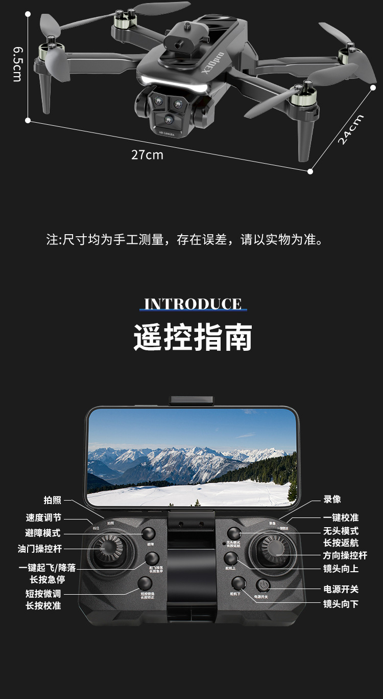 국경 간 신제품 X30pro 드론 브러시리스 모터 8k HD 항공 사진 항공기 지능형 장애물 회피 원격 제어 항공기스토어 가기